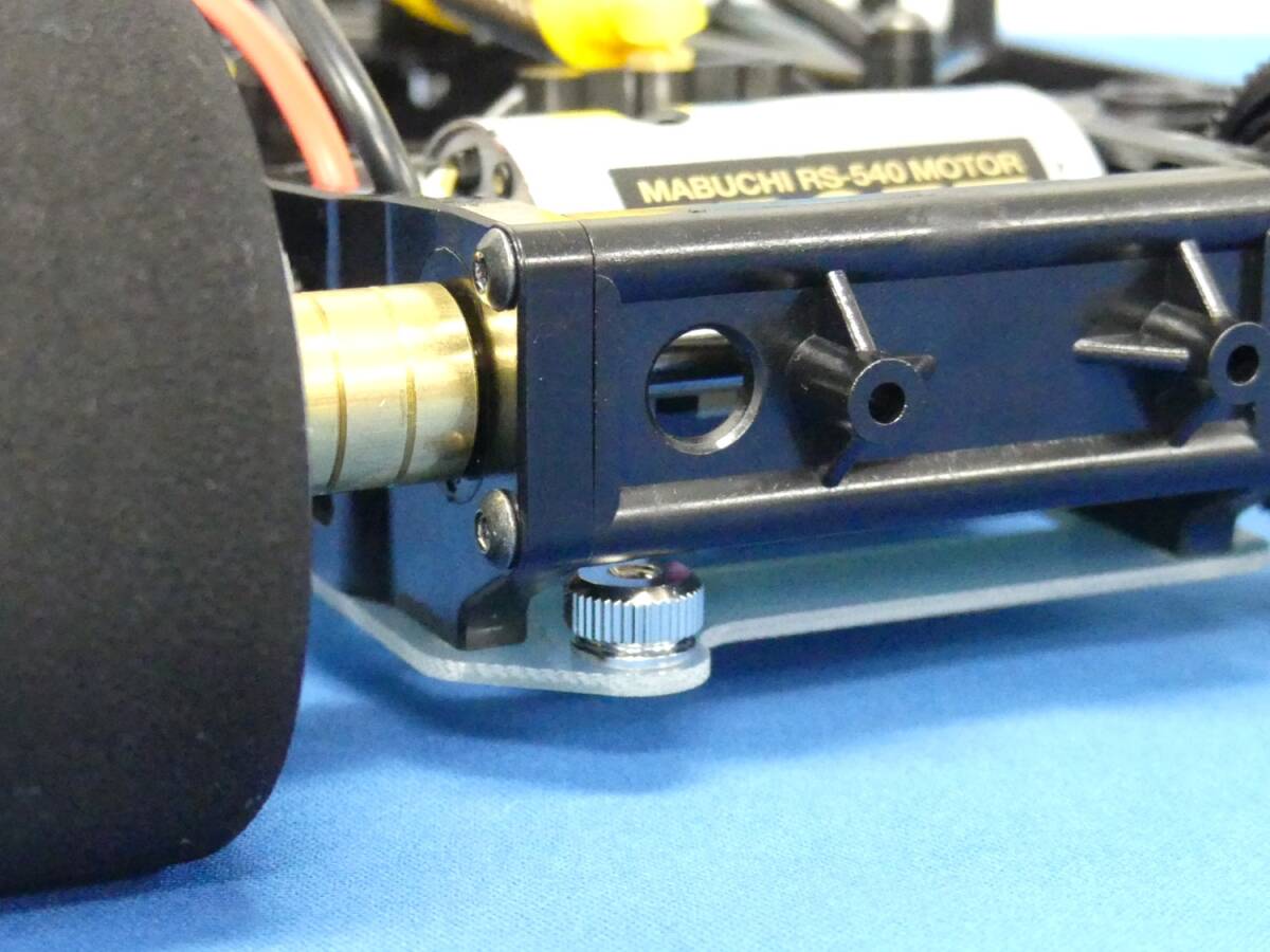 ダイレクトドライブカーの最大の「クセ」でもある、左巻きを 少しでも抑制する為に、左リヤタイヤへの面圧向上を