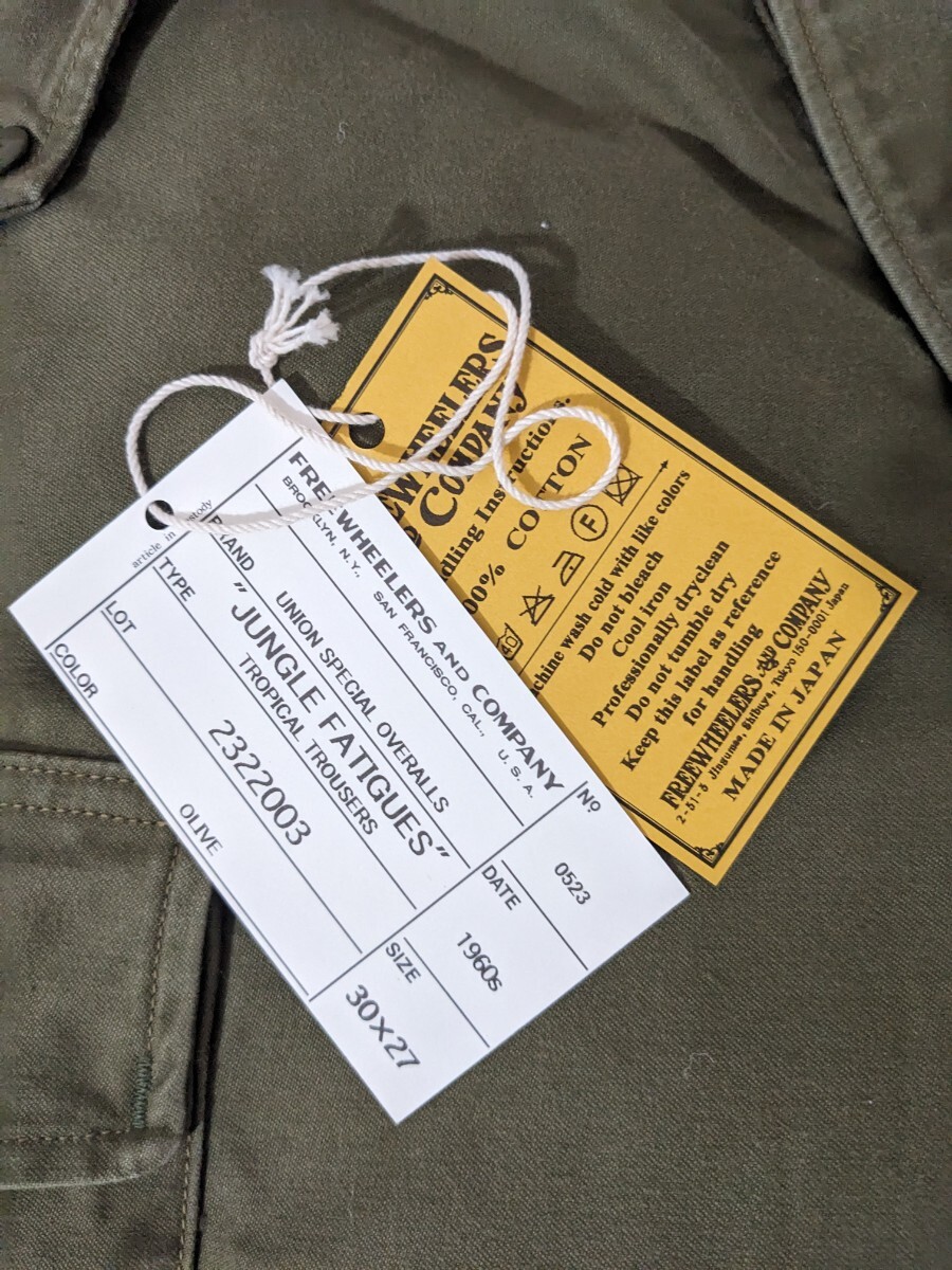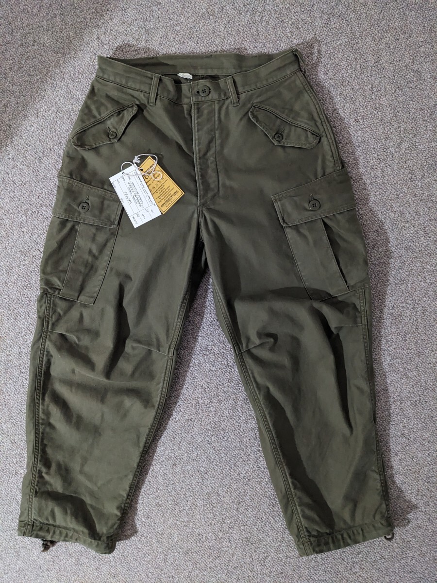 FREEWHEELERS “Jungle Fatigues” TROPICAL TROUSERS Military Back Satin COLOR:OLIVE 44,000円 No:#2322003 サイズ30-34 ウエスト40 股下66 誤差はご了承ください。 1960年代のアメリカ軍で使用されていたミリタリーパンツをモチーフにした、シビリアンミリタリースタイルの6ポケット・ミリタリーパンツ “ジャングル・ファティーグス” になります。 生地には、ヴィンテージ古董商品,有可能客製化、修改、換過零件,請下標錢注意。 ・サルファイド・ダイド・ミリタリー・バックサテン生地をしており、少し薄手ではありますがハリとコシ感のあるしっかりとした生地感に仕上がっております。また、硫化染料で染めてある為、風合いも良く、チノパンに近い素材感なので、ゴワゴワ感がなくスッキリとしたクセのない生地です。 シルエットは、極太シルエットでダボっとしており、サラッとした生地感と相まって涼しく穿けるパンツです。また、レングスは短めで裾はドローコードで絞れる仕様になっております。 美品の方だと思いますが、あくまでも中古です。神経質な方の落札はご遠慮ください。 返品等は対応できません。 ※落札後にすぐに5時間以内にお支払いの手続きができない方はご連絡ください。ご連絡のない場合はトラブル防止の為、落札後でもすぐに削除いたします。 お受取りの手続き等スムーズにできる方のみよろしくお願いいたします。 ※返信や交換は受け付けられません。付属品はありません。ご了承ください。 悪い評価が多い方は入札しないでください。 入札削除します 本当に欲しい方はコメントください >