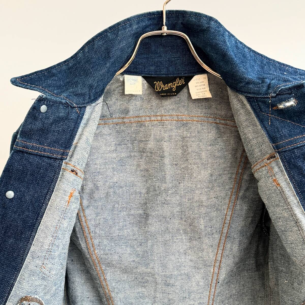 ■ Wrangler 1970年代製 " 124MJ デニム ジャケット " ※追加画像が消えている事があります。ご希望でしたら再アップさせて頂きますのでお気軽にお声掛け下さい。 ■ 極上品 ※まだ糊がバリバリと残る綺麗な状態。 ■ サイズ表記 34 肩幅 42 身幅(脇下-脇下) 47 着丈(背面襟付け根から) 54 肩袖丈(肩付け根-袖先まで) 64 (㎝) ※サイズに関してご不明な点がありましたらお気軽にお問い合わせ下さい。 商品説明 " 124MJ " ブロークンデニム。 濃淡のある縦落ちが魅力的な一着。 ビンテージデニム熱に後押しされてじわじわと高まるラングラーの評価。 サイズ表記 " 34 " は希少だと思います。 女性の方、ご検討下さい。 多数の画像を掲載しておりますのでじっくりご覧頂き、 熟考の上、入札頂けると幸いです。 細かな質問や要望にもお応え出来るように出来る限り対応させて頂きます。 お取引完了まで誠心誠意対応させて頂きます。 この他、私が長年かけて集め続けたコレクションや 一点一点厳選して仕入れた洋服群を出品しておりますのでそちらも併せてご覧下さい。 発送方法 ■ 佐川の元払いでお送り致します。 注意事項 ■ オークション終了から48時間以内需在賣家要求時間完成匯款 に決済頂ける方のみ入札下さい。 ※お支払い日の相談は事前にご質問下さい。 ■商品到着から24時間以内に受け取り連絡をお願いします。 ■ 悪い評価の多い方は私の判断で入札を削除させて頂く場合がございます。 また、新規入札の方は必ず入札の意思がある旨を予め連絡下さい。 そうでない場合は入札を取り消しさせて頂きますのでご理解下さい。 ■ 即決希望がございましたらお気軽に仰って下さい。 その際はご希望の金額をお知らせ下さい。 ■ 仕事の都合上発送まで5-7日程度頂く場合がございますので お急ぎの際は予めご連絡下さいませ。 ※長期出張の際は自己紹介欄に予め記載させて頂きますので トラブルを防ぐ為にも、入札前に必ずお読み下さい。 (241205)