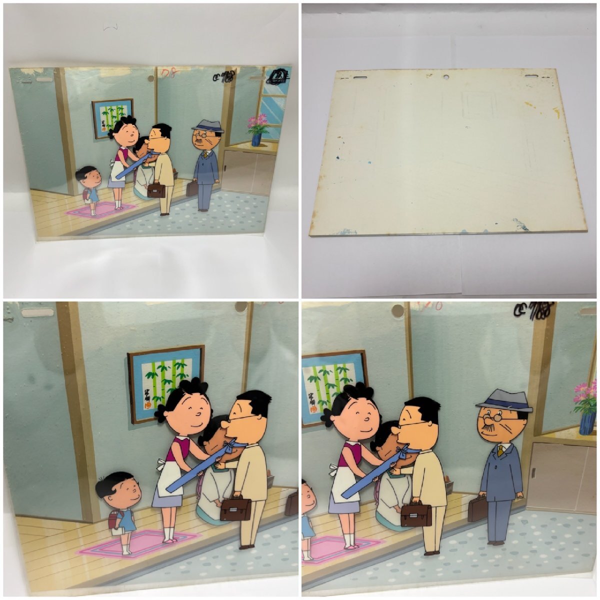 【UD4224】アニメ サザエさん セル画 4枚 背景付き 磯野家 カツオ マスオさん タラちゃん ワカメ 全員集合 一家団欒 昭和レトロ フジテレビ