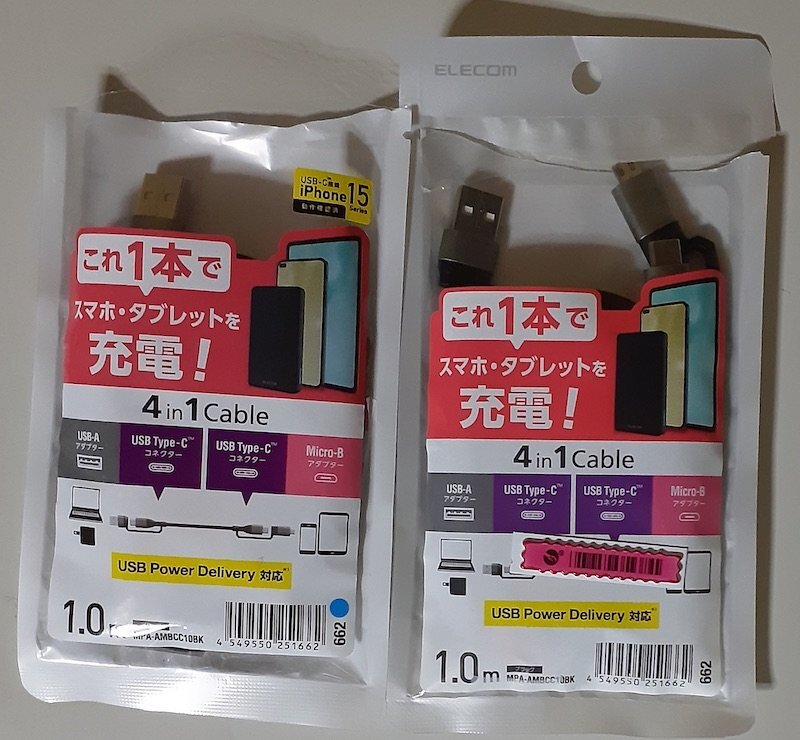 6174 MPA-AMBCC10BK 2本まとめて ELECOM 4in1 TypeC/USB-A - TypeC/MicroUSB 1.0m これ1本でスマホ・タブレットを充電! iPhone15動作確認済