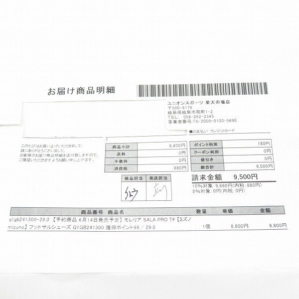 | 商品名稱 : | 【未使用】MIZUNO/ミズノ モレリア サラ プロ TF フットサルシューズ/Q1GB241300/29 /080 |