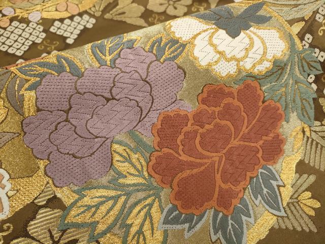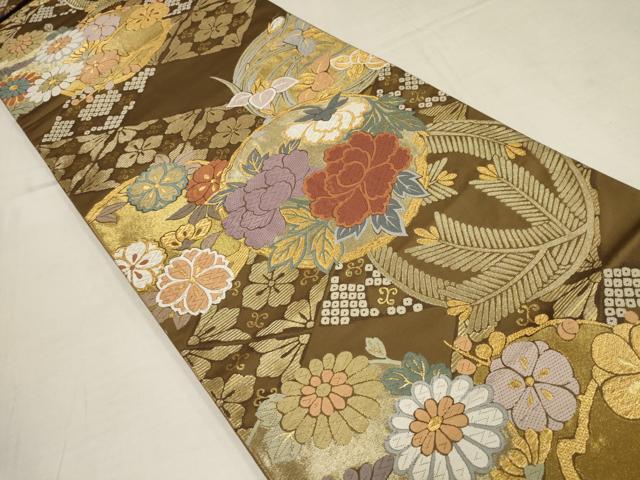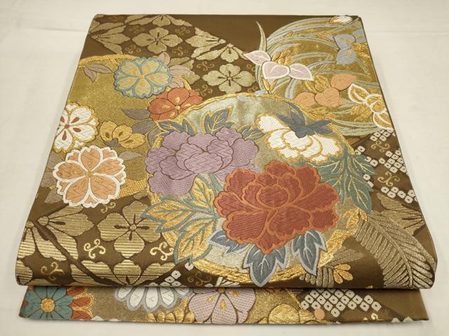 平和屋着物▼六通柄袋帯 唐織 花丸菱六小袖 金糸 正絹 逸品 AAAX4531wj