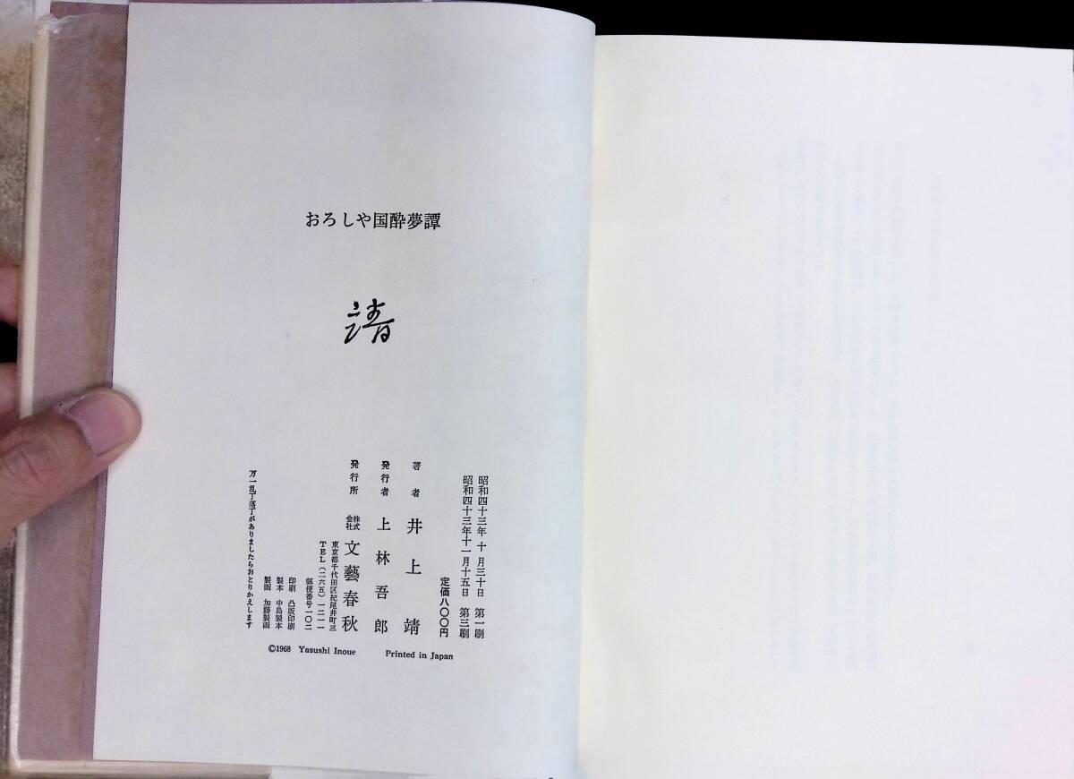| 商品名稱 : | おろしや国酔夢譚 井上靖 井上靖 昭和43年三刷 文藝春秋 UA250804M1 |