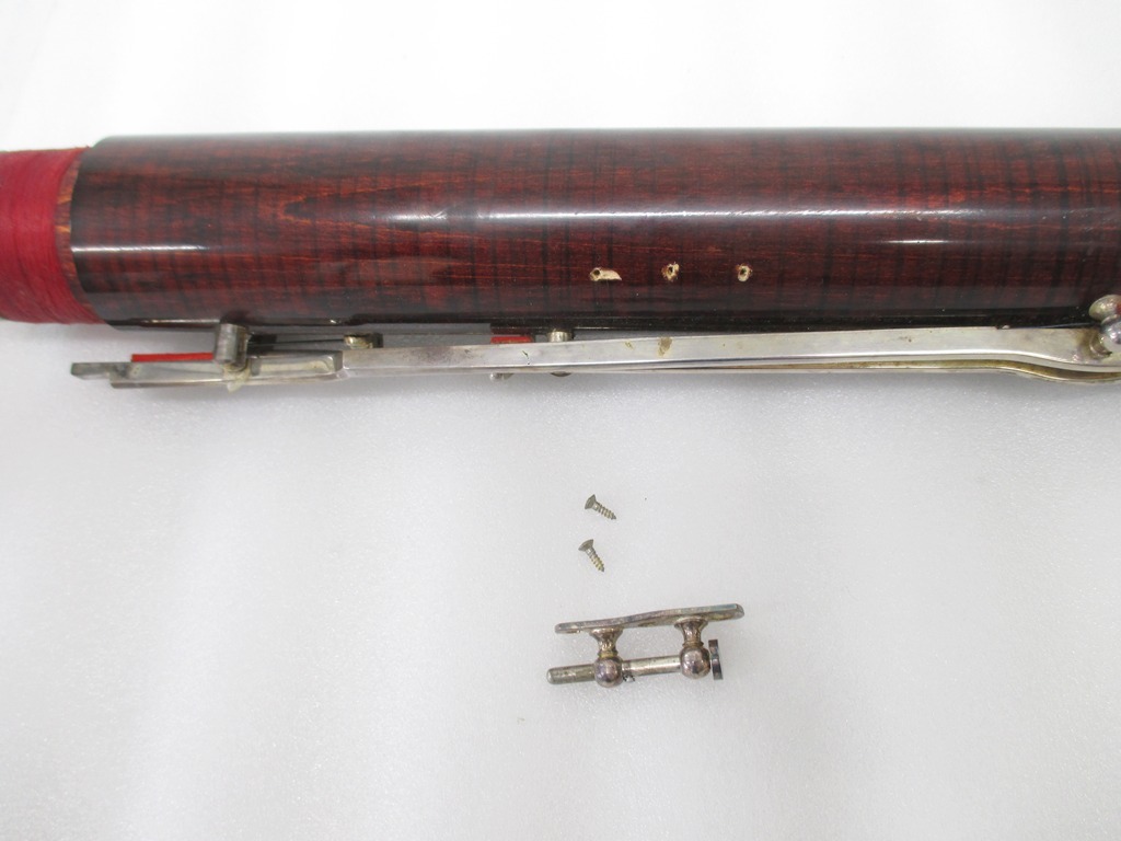 | こちらの楽器に詳しくないため、部品が足りているかわかりません。 写真をよくご確認のうえご入札ください。 管体割れが複数あります。 ポストが複数抜けかけです。 傷、メッキはがれがあります。 | |