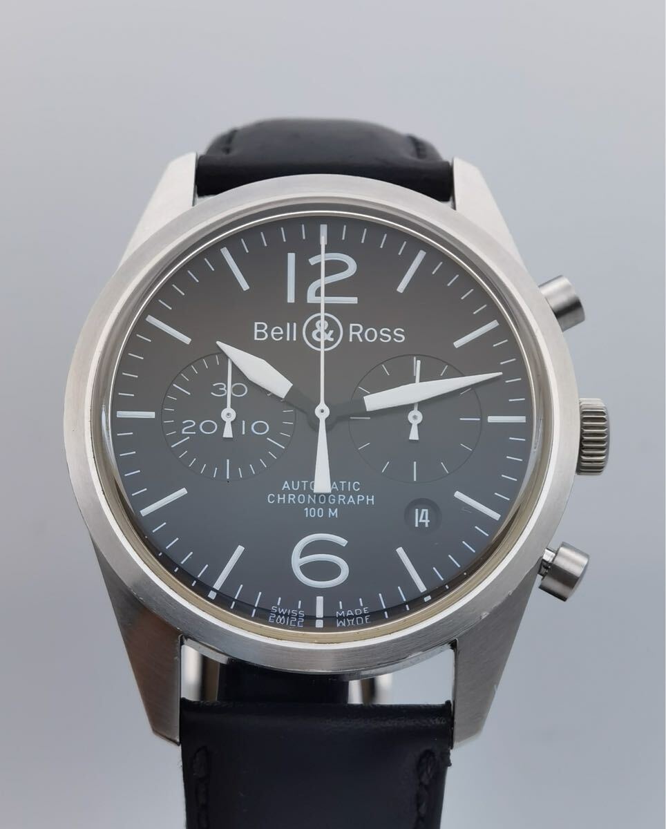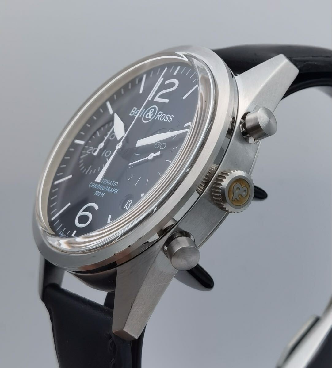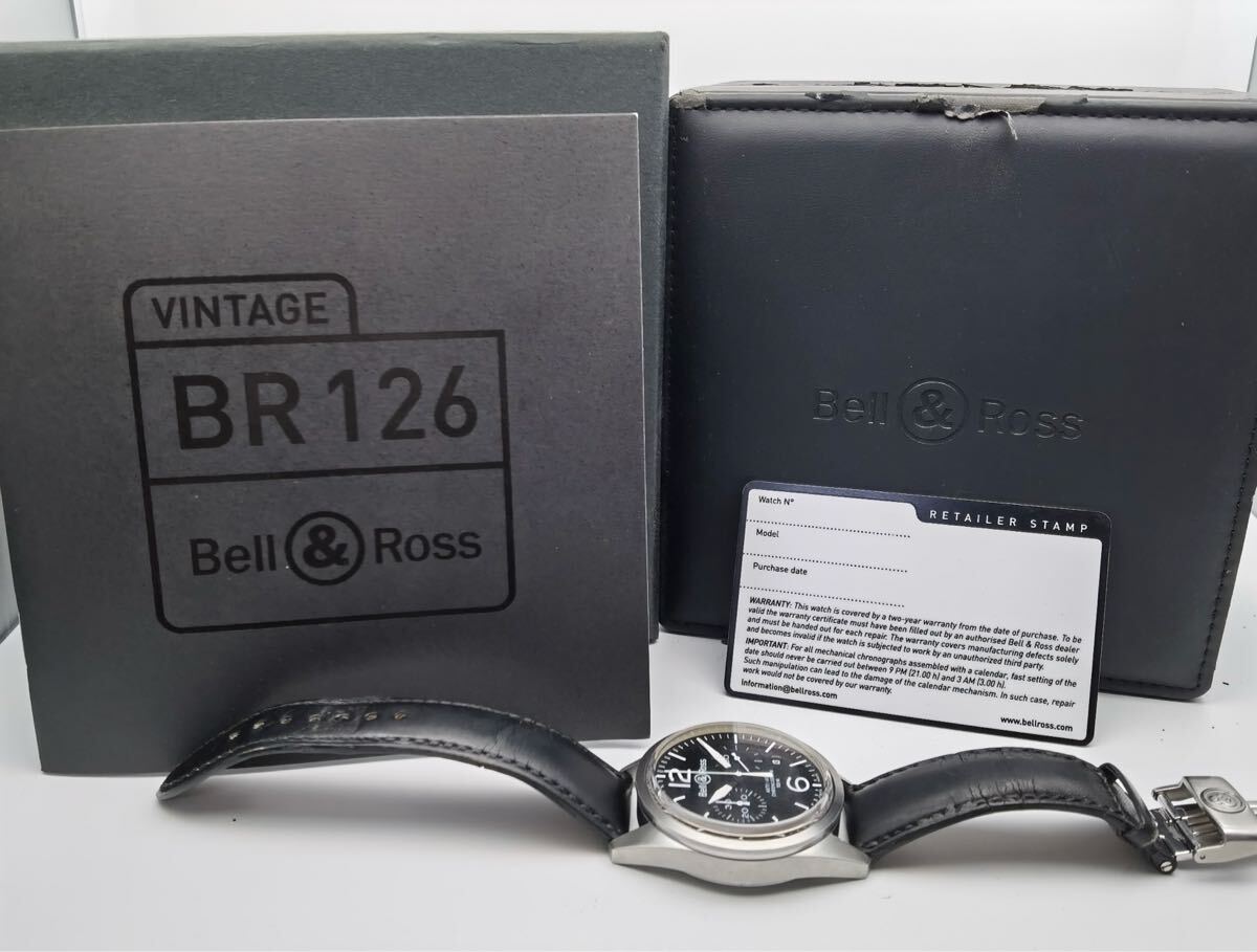中古 箱付き ベル&ロス Bell&Ross ヴィンテージ オフィサー BR126-94 クロノグラフ デイト ブラック文字盤 SS 自動巻き メンズ 腕時計