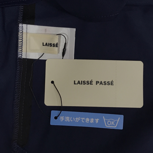 | 新品同様 レッセパッセ サイズ 38 半袖 ブラウス ボタン トップス ネイビー×ホワイト系 タグ付 LAISSE PASSE |