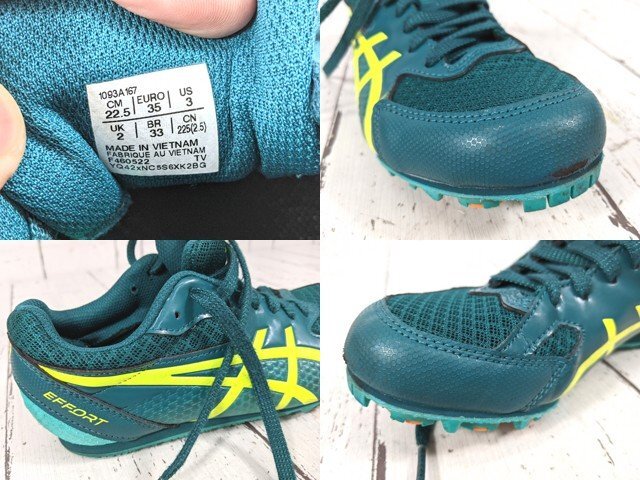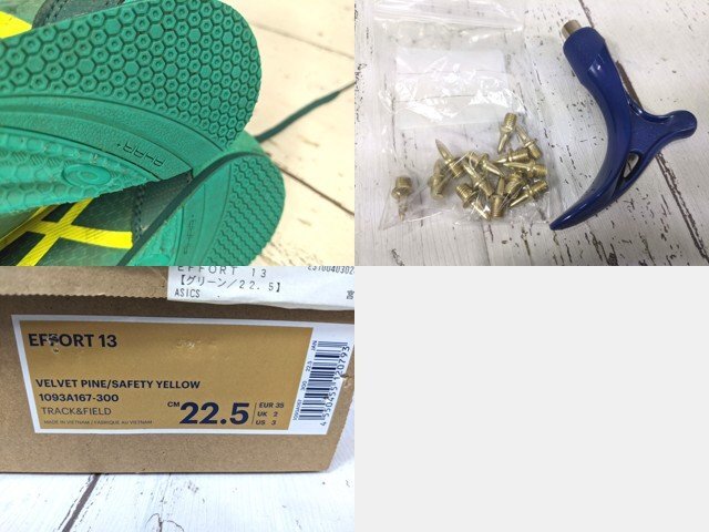 | 陸上競技用スパイクシューズ メーカー:asics モデル:EFFORT13 品番:1093A167 ベルベットパイン×セーフティイエロー サイズ:22.5cm 重さ(片方当たり):約169g -------------------- その他多数商品を出品中!! 出品商品一覧は→こちらをクリック -------------------- | ||||||||||||