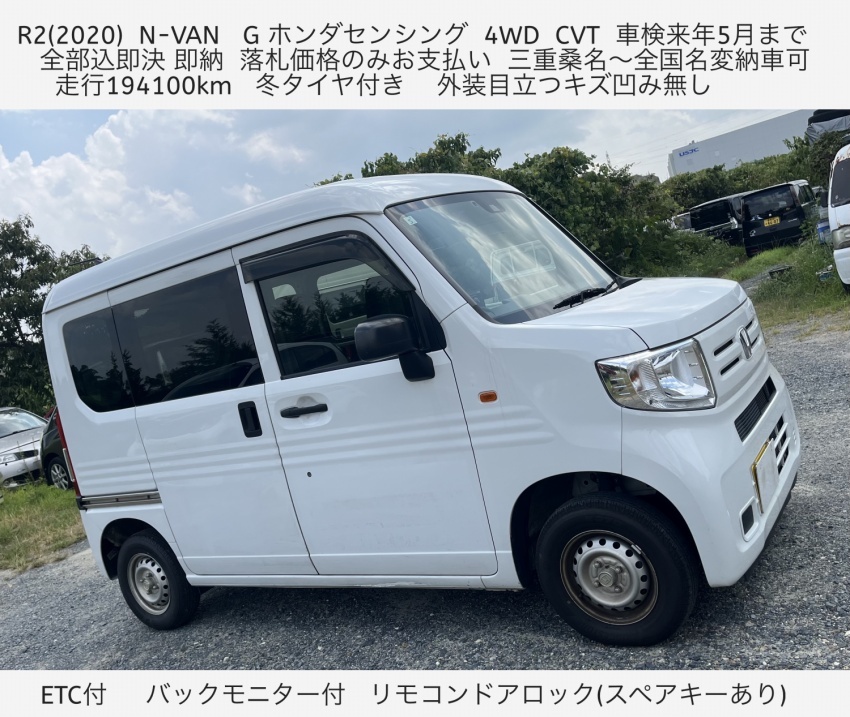 令和2年(2020)年5月 初年度登録 ホンダ N-VAN Gホンダセンシング 4WD(フルタイム) CVT車 ECONモード付車