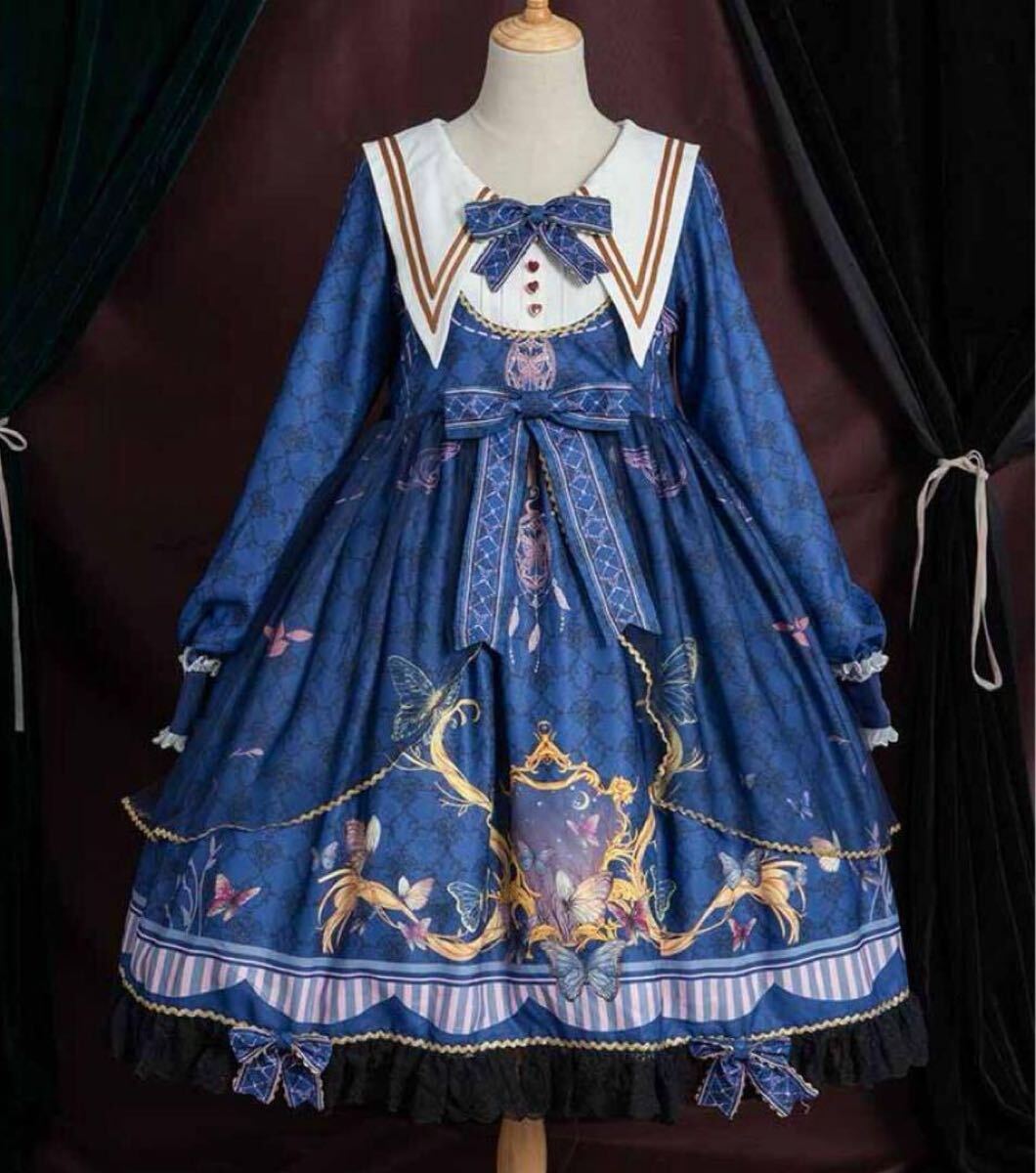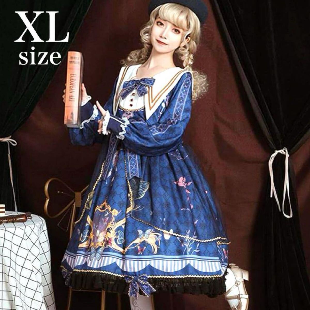 【最終価格】ロリータワンピース ネイビー ひざ丈 長袖 ゴスロリ コスプレ お嬢様 XL ハロウィン 仮装