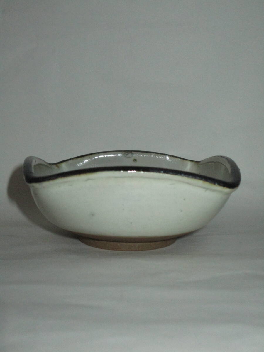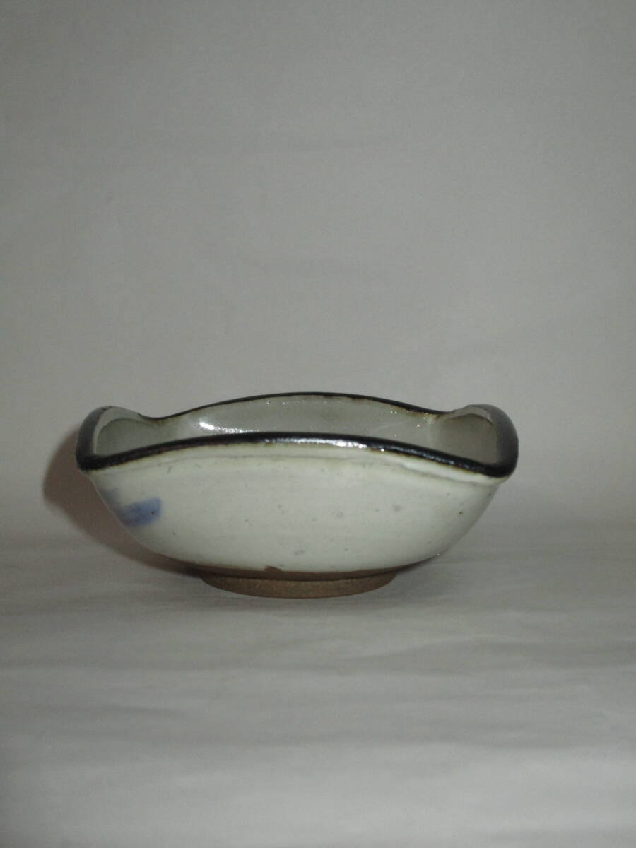 【明治期頃】瀬戸焼 絵瀬戸 日の丸・帆船紋 四方型 小鉢 1客 (幅9.2㎝) ●酒盃にも● ●無傷●