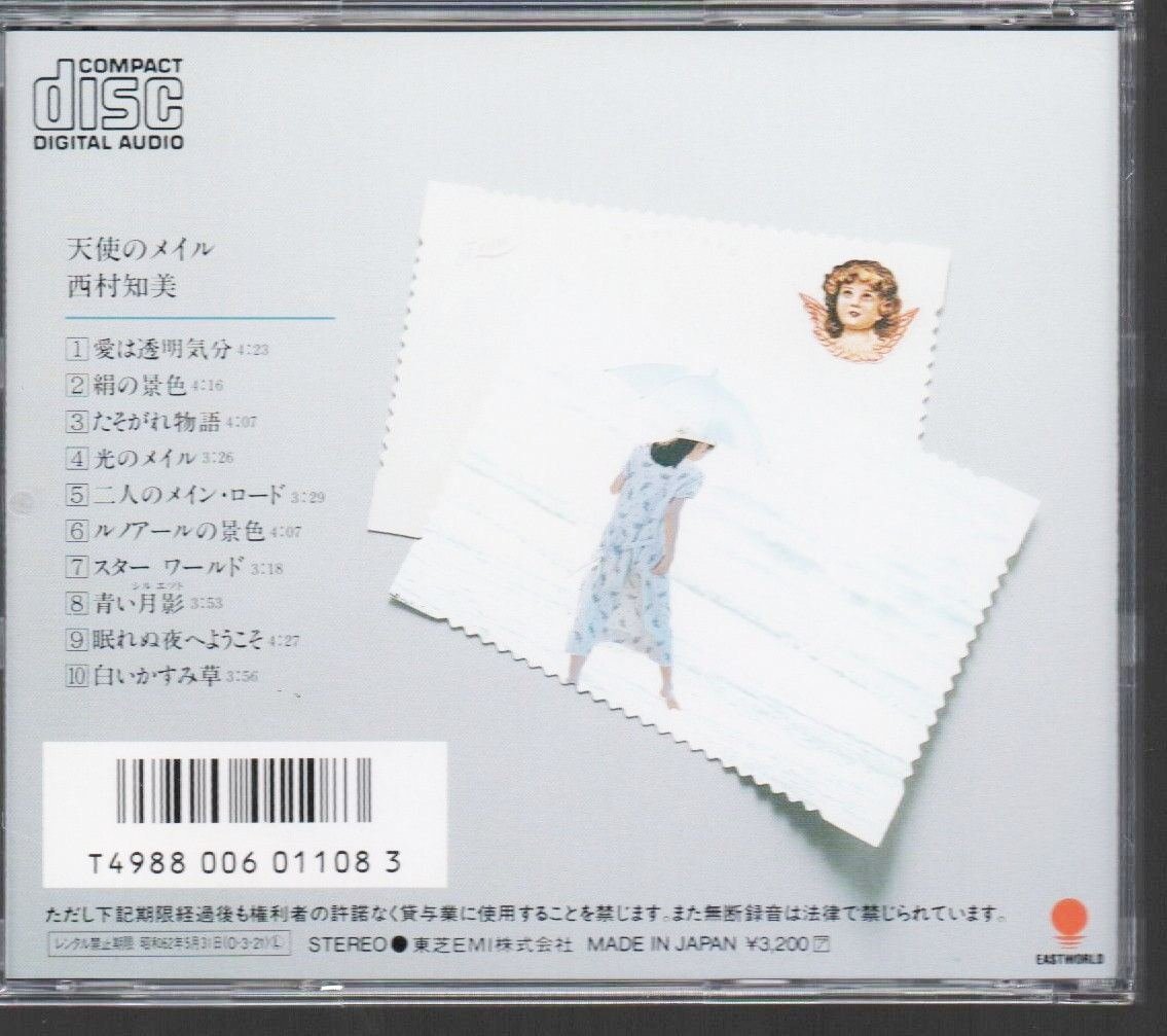 | 商品名稱 : | ●西村知美●名盤アルバム●「天使のメイル」●♪愛は透明気分/絹の景色/たそがれ物語/青い月影/白いかすみ草♪●ケースきれい!!● |