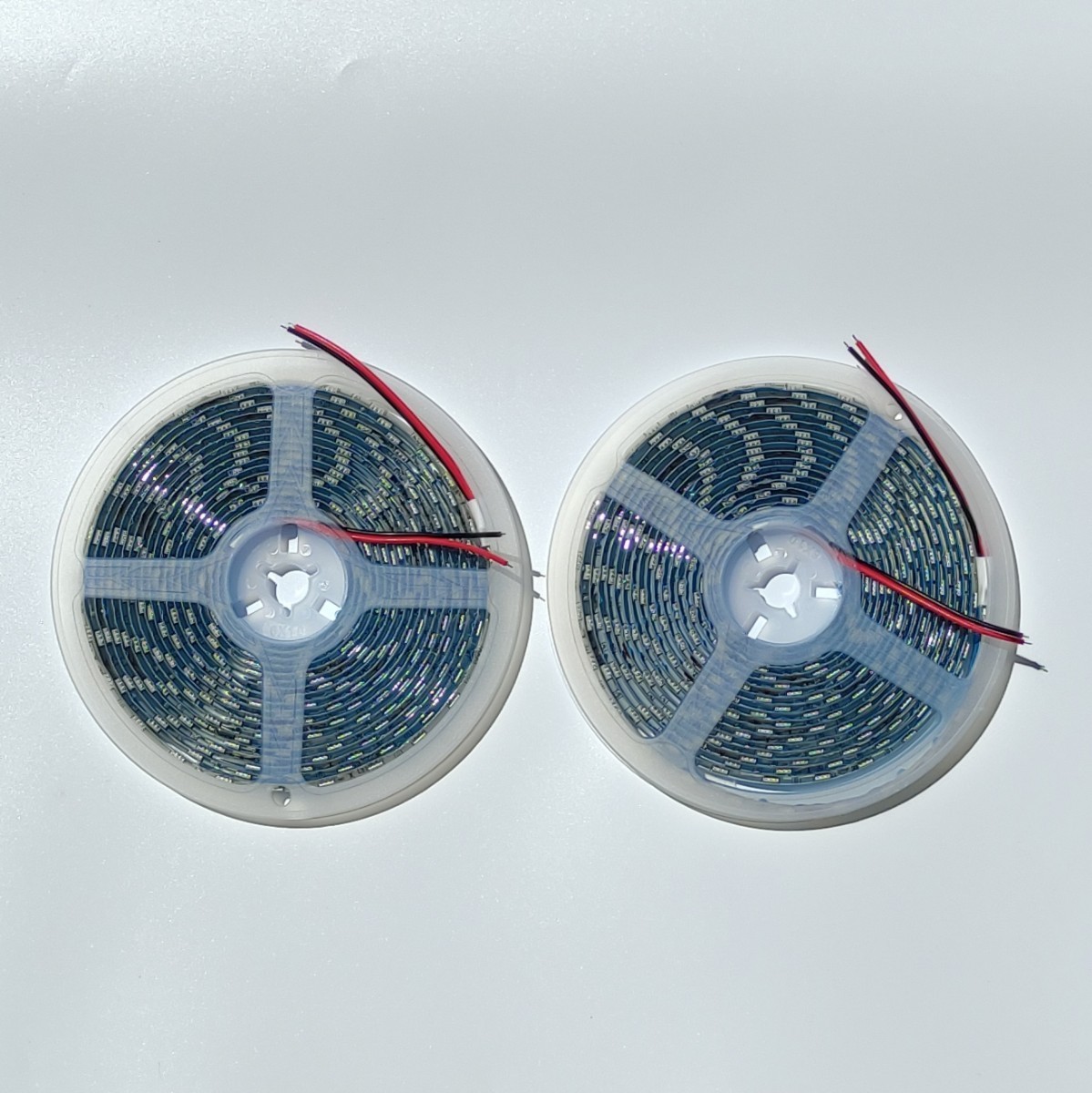 超お得! 最新型 高輝度 両面テープ 付き トラック バス 大型車 用 24V 60 LED テープ ライト 防水 SMD5050 ホワイト 5m × 2巻 計10m です。 SMD5050を搭載し、一般的なLEDテープライトより高い輝度の防水・防塵のシリコンチューブ加工済みLEDテープライト。 低圧直流24Vの安全設計。 24V仕様。バスやトラック等の大型車に最適。 防水シリコン加工のレンズ効果でより拡散力アップ!※画像参照 フレキシブルなテープ仕様なので平面・曲面も自由自在です。 裏面に両面テープ付きなので、そのまま貼り付けられます。 接続方法は簡単。プラスとマイナスを接続するだけで使用出来ます。 10cm間隔でお好きな長さにカット可能なので、取り付けたい場所にあわせて使用出来ます。(※切断後のテープを使用するためには別途半田ごて等が必要です。) 防水・防塵なので車外・屋外の室内照明からタイヤ灯・サイドマーカー等、幅広くご使用頂けます。 電圧:DC 24V LED数/1m:60個 合計LED数/5m:300個 タイプ:SMD5050 発光色:白 ホワイト 色温度:6000K 光束:3000-4200lm(1SMD当たり10〜12lm) 防水規格(テープ部分):IP65(シリコンチューブ防水加工) テープ幅:18mm テープ厚み:4mm テープ長/1巻:5m 作業温度:-20〜55℃ 商品内容:LEDテープ 5m × 2巻 計10m 複数割引もあります! 単体・複数購入をご希望の方にバリエーション豊富に取り揃えております。 1ロール・2ロール・4ロール、一度にご購入される量が増えれば増えるほど1ロール当たりの単価がお安くなります。 ご希望の方は当方の名前をクリックして、ブースの中からご選択下さい。 ※テープロール(ケース)のカラーはロットにより予告なく変更される事があります。(白・黑・透明の何れか) ※構造上の関係で一定の確率で点灯しない区間が発生する場合があります。その際はその区間をカットしてご使用下さい。 ※厚さ制限がある為、封筒直入れの簡易梱包にてお届け致します。 ※仕事との兼業の為、最長で4日までお時間を頂く事が御座います。 漁船 船舶トラック 航海灯 屋外照明 間接照明 DIY チップマーカー タイヤ灯 マーカーランプ 作業灯 >