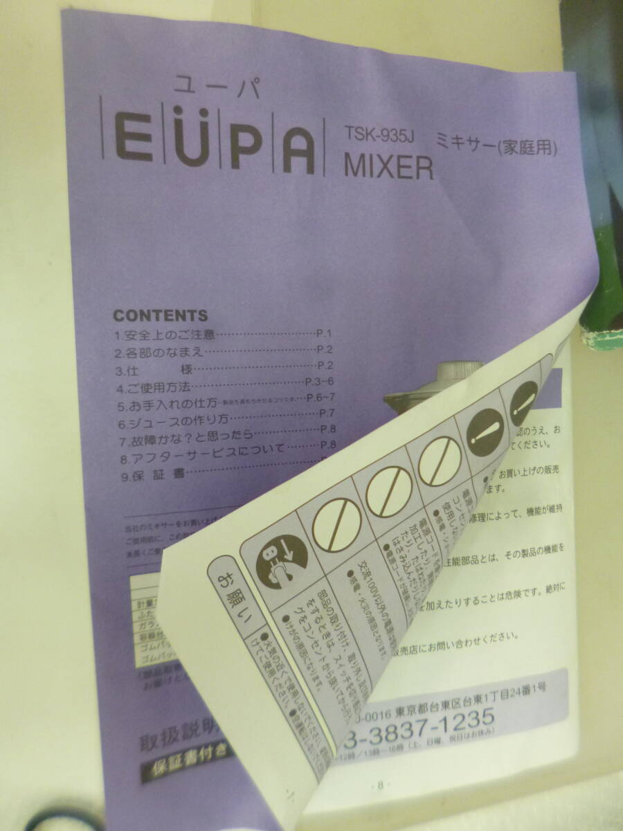 | 商品名稱 : | ★385)ジュースミキサー・EUPAユーパ TSK-935J 04年製 ガラス容器 箱、説明書あり※中古品/動作OK/使用感現状品■100 |