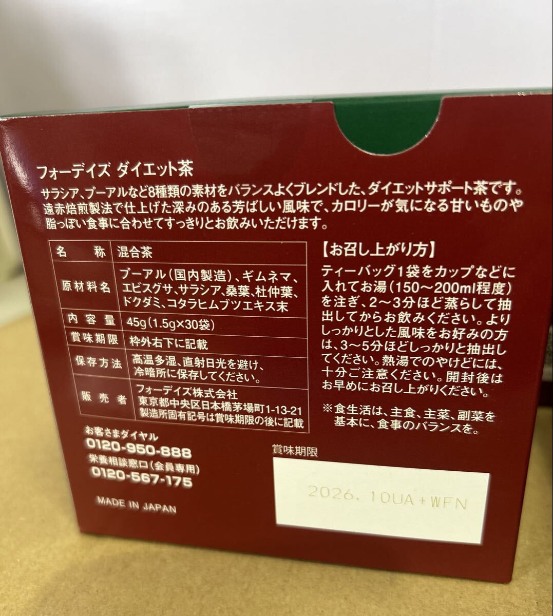 ★格安スタート!送料込み!フォーデイズ ダイエット茶 5箱 賞味期限 2026.10 混合茶 FORDAYS ☆