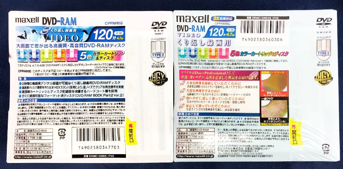 ☆未使用品☆【未開封品】DVD-RAM2パックセット DRMC120MIX.1P5S/DRMC120MIXB.1P5S maxell 商品説明 【未開封品】DVD-RAM2パックセット DRMC120MIX.1P5S/DRMC120MIXB.1P5S maxell (12125090314296S) *未開封品です。 maxellのDVD-RAM5パックセット×2です。 *メーカー:maxell *型番:DRMC120MIX.1P5S/DRMC120MIXB.1P5S *掲載画像に写っているものが、出品物のすべてです。 注意事項 *未使用品ですが、パッケージにスリ傷等の傷みがあります。 *こちらはリユース品の為、新品ではありません。未使用品での出品となります。 ご了承の上でご入札お願いいたします。 発送詳細 こちらの商品は「ゆうパック」での発送となります。 地区別配送料金は下記の一覧表でご確認ください。 *商品サイズの都合「ゆうメール」「ゆうパケット」への変更はできません。 こちらの商品案内は 「 ■@即売くん5.53■ 」 で作成されました。