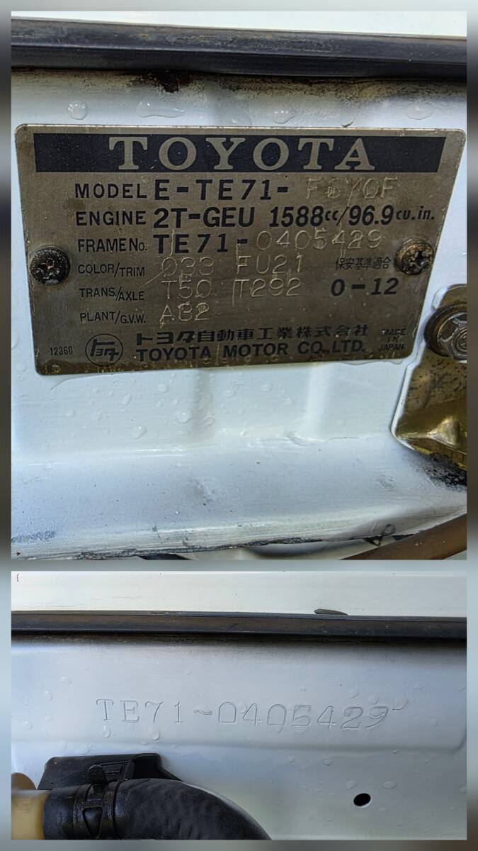 | 商品名稱 : | トヨタ スプリンターGT TE71 昭和54年9月登録 エンジン 2T 1600cc |