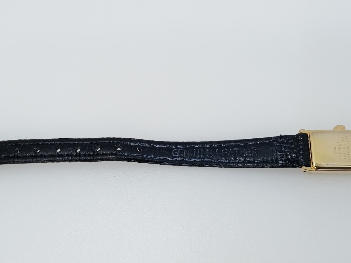 ゴールドトーンのケースとブラックの本革レザーや 文字盤にダイヤモンド・竜頭にサファイア付きの豪華仕様となっています。