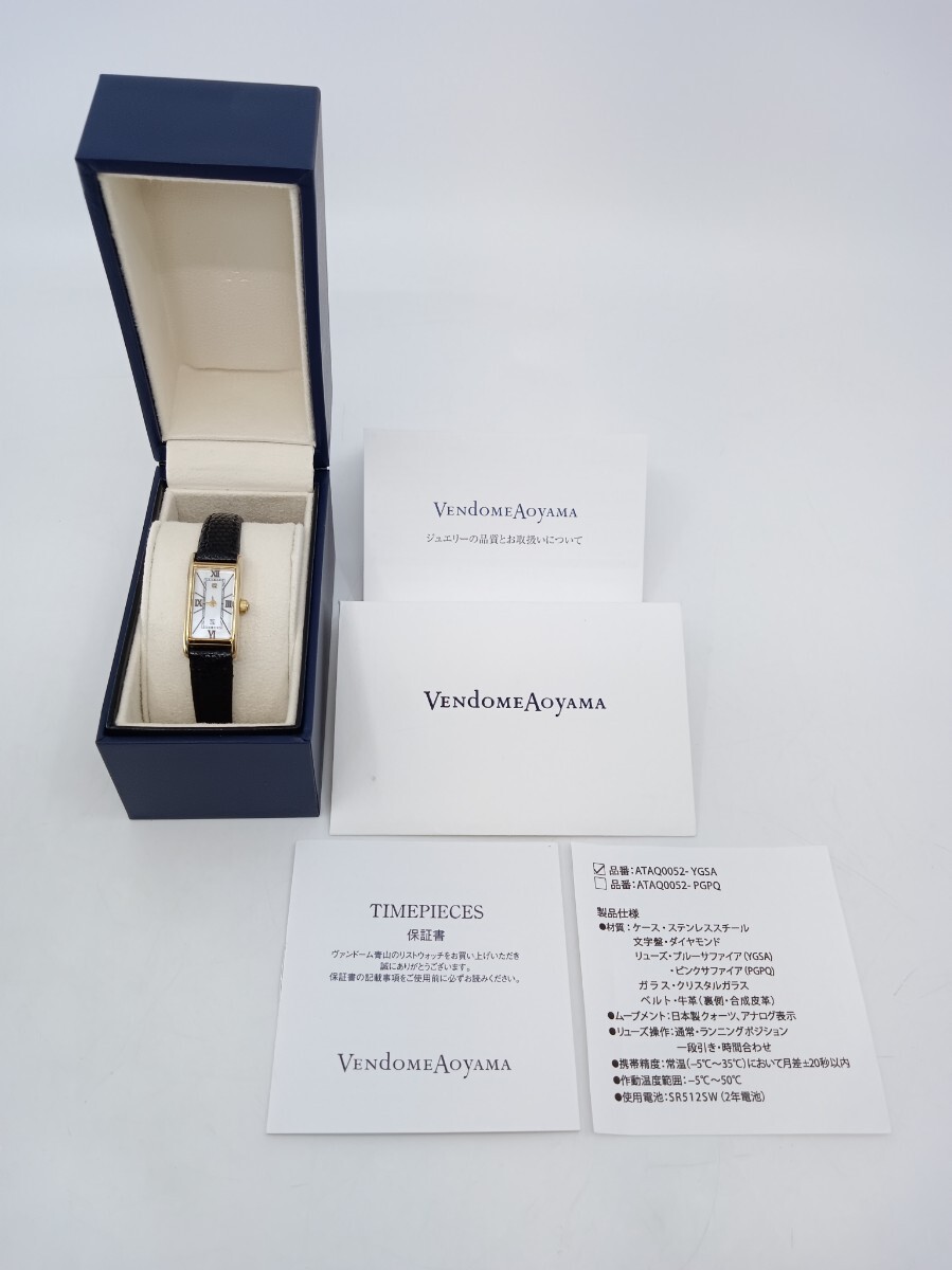 ヴァンドーム青山 ATAQ0052YGSA レディース腕時計 タンク型 ブルーサファイア/ダイヤモンド付き 箱/保証書/説明書付き
