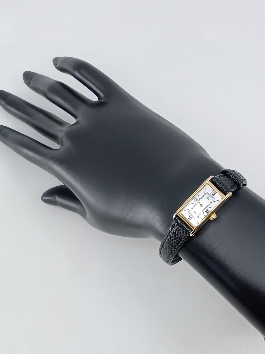 タンク型の縦長ケースにローマ数字を配したクラシカルな文字盤デザインの腕時計で、