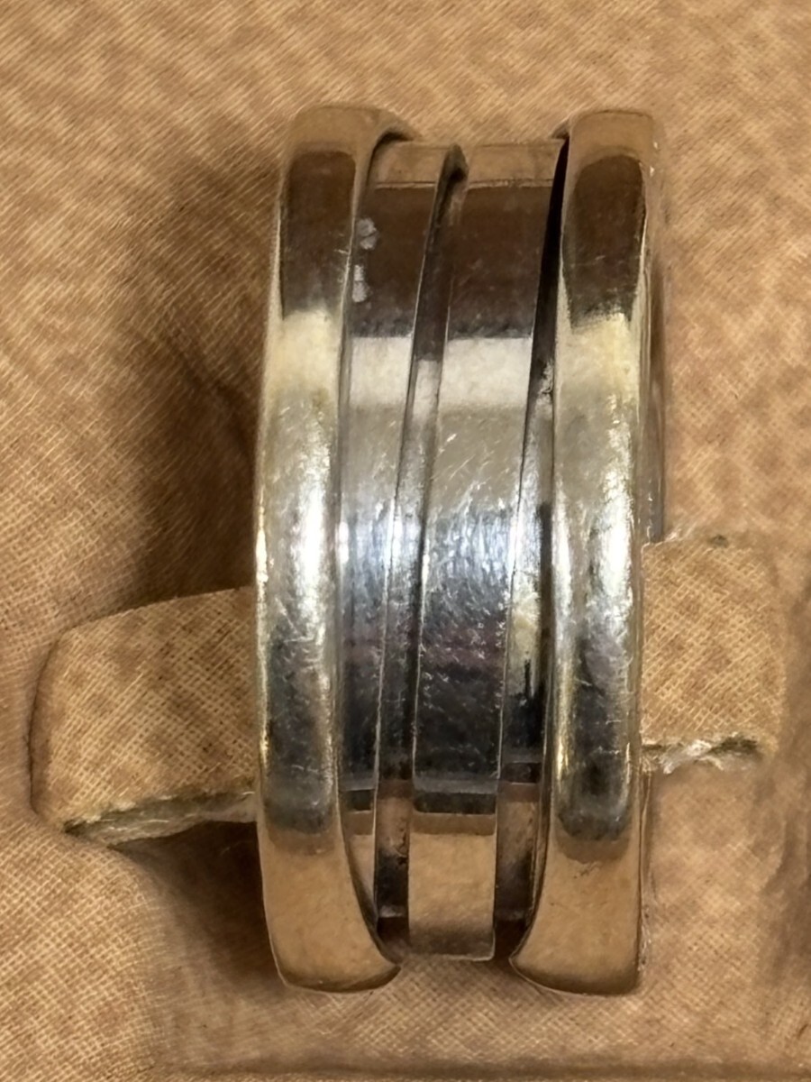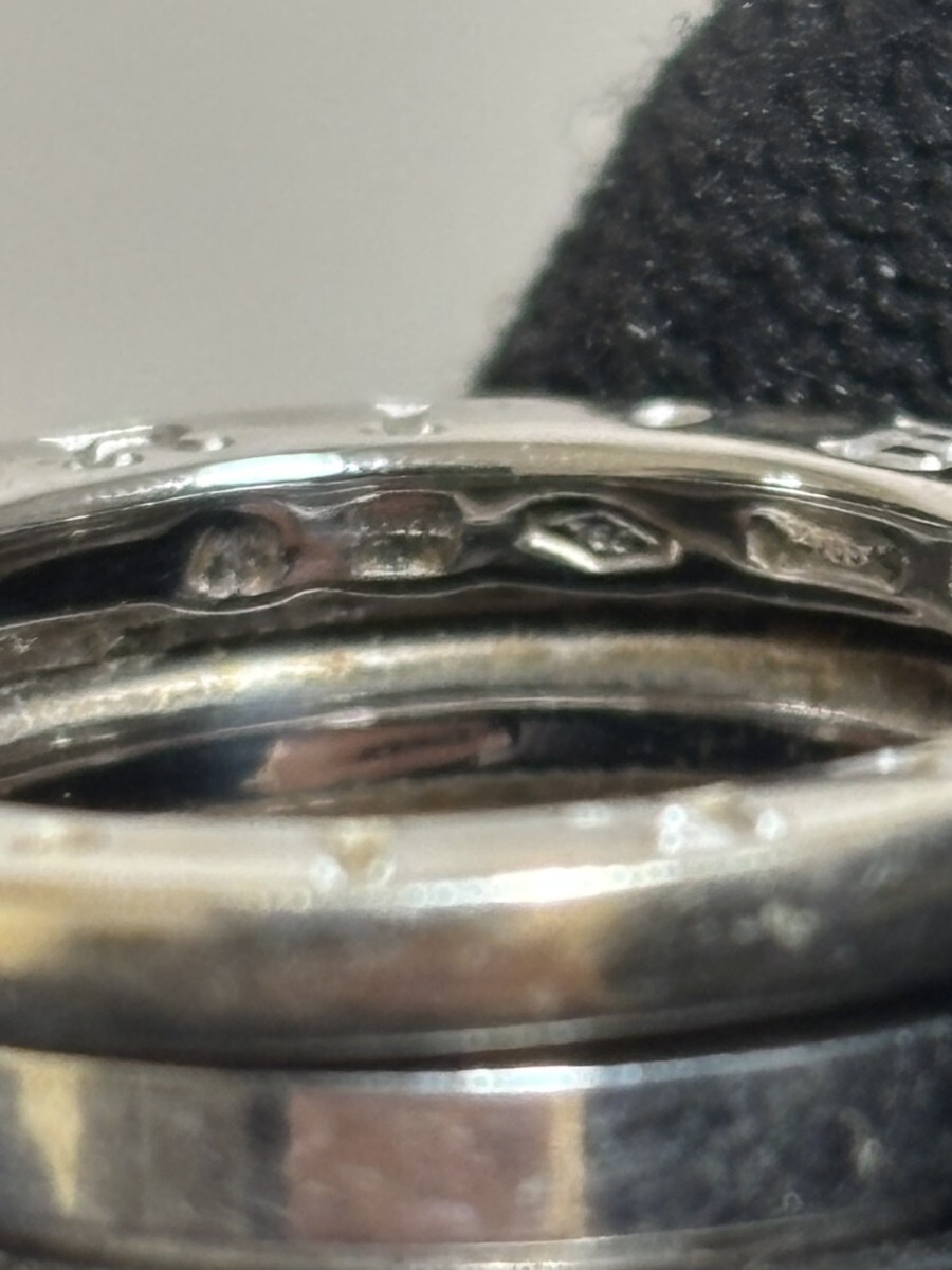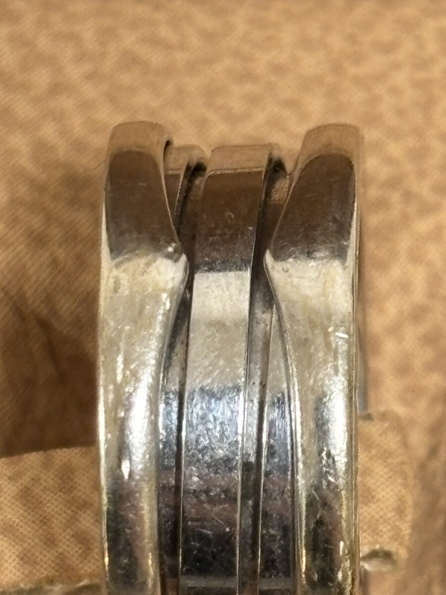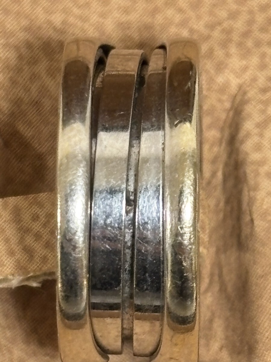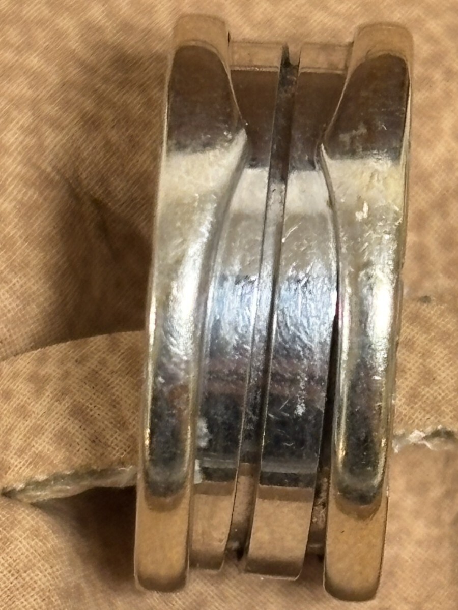 ご覧いただきありがとうございます。 こちらは人気モデル ブルガリ ビーゼロワン リング です。 シンプルながらも存在感があり、幅広いシーンでご使用いただけるデザインです。 メンズ・レディース問わず人気が高く、プレゼントにもおすすめのお品です。 ◆商品詳細 ブランド:ブルガリ モデル:ビーゼロワン リング 素材:シルバー925 サイズ:内径約15ミリ(個人採寸です。) 付属品:専用箱(内箱・外箱) ◆状態 全体的に使用感、小傷、くすみが見られます。 磨き直しをされると、さらに美しくご使用いただけます。 詳細は必ず写真をご確認ください。 ※発送について 沖縄、北海道、離島を除き一律1,000円となります。 沖縄、北海道、離島は、一律2,000円となります。 サイズが大きい物、重たい物に関しては、例外とし配送会社に準じた送料とさせていただきます。 商品によっては送料の関係で折りたたんだり、潰しての梱包を行う場合がございます。 極力早めの発送を心がけますが、土日祝を挟むと発送までにお時間をいただく場合がございます。 ※発送連絡について こちらの発送準備が出来次第、発送連絡をいたします。 配送業者様の集荷、追跡番号の登録まではお時間がかかる場合がございます。 ■ミスやクレーム防止のためまとめ取引は中止致しましたのでご理解ください。 ■Yahooかんたん決済期限を過ぎた場合は落札者都合にてキャンセルとリスト追加を行います。 ■商品は現状渡しとなります。商品説明や写真等をよくご確認いただきご入札をお願いします。 ■中古商品となりますのでご理解ください。 ■新品、完品商品をお求めの方、商品に対しデリケートな方は、ご入札のご縁慮をお願いいたします。 ■写真の枚数に限りがあり瑕疵箇所がある場合がございます。再三気を付けてはおりますが、状態が違う等の発見時はご一報いただきますようお願いいたします。 ■お品物が当方に届き次第、瑕疵箇所を確認し、瑕疵箇所の明記もしくは写真にてご提示いただいている場合、着払いにて返送致します。お先に返金することができませんのでご注意ください。 ■瑕疵箇所以外で、お客様のご理由に対しての返金は行っておりません。 ※ご質問に関しましては、分かる範囲でお答えいたします。必ずご入札前にご質問ください。(2025年 10月 5日 14時 26分 追加) 925と記載ありますが750になります。 >