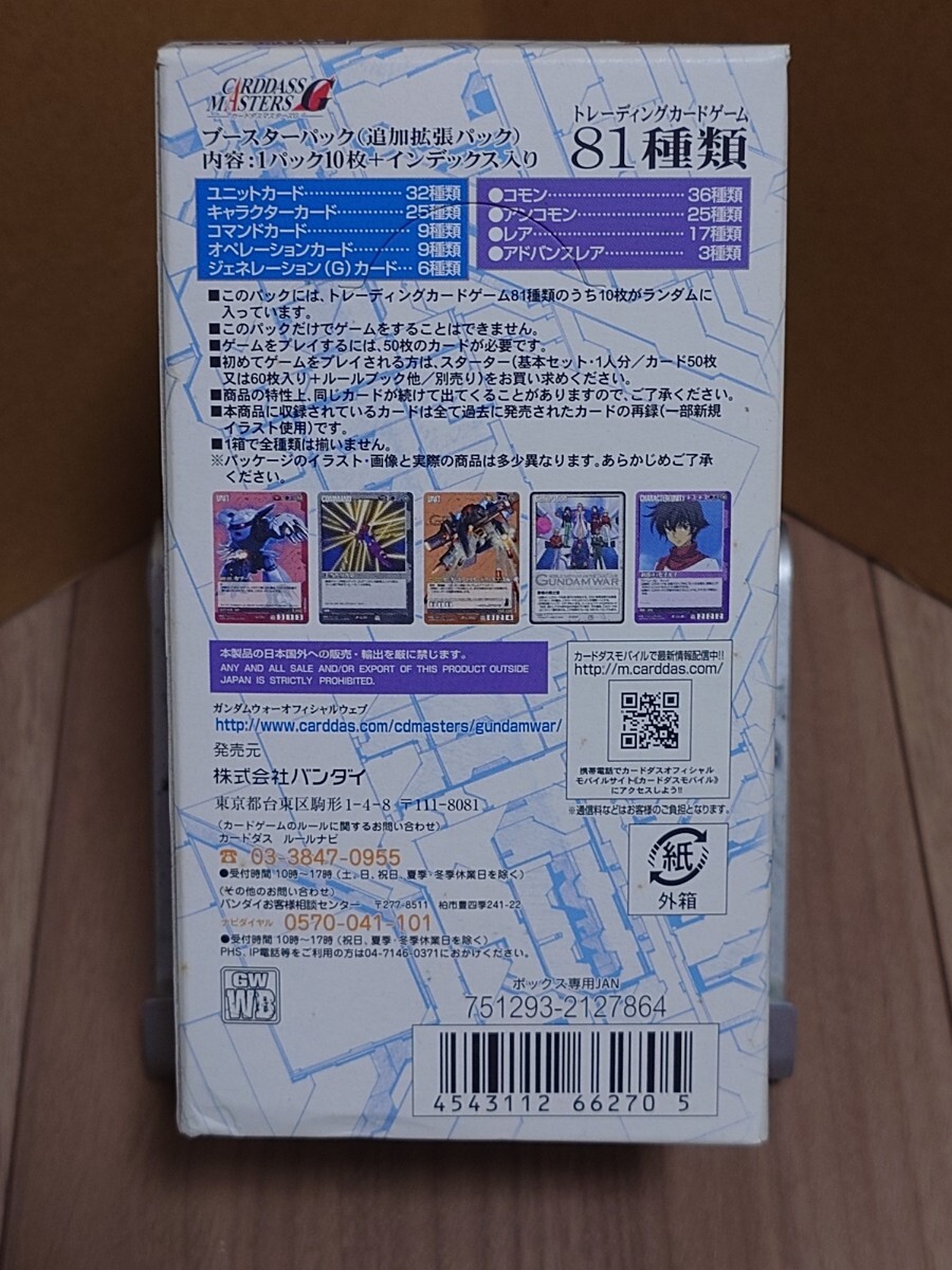 【未開封】GUNDAM WAR ウィナーズブースター01 1BOX (20パック入り) バンダイ ガンダムウォー