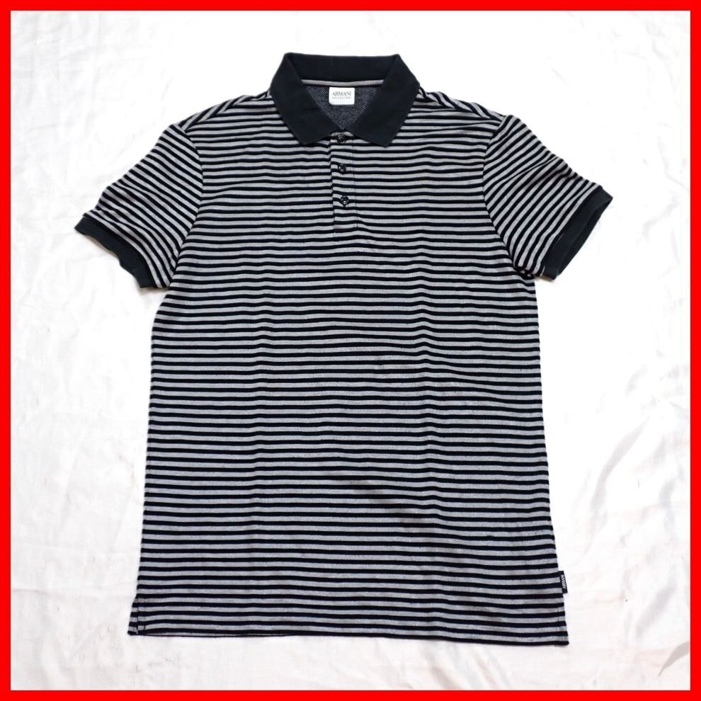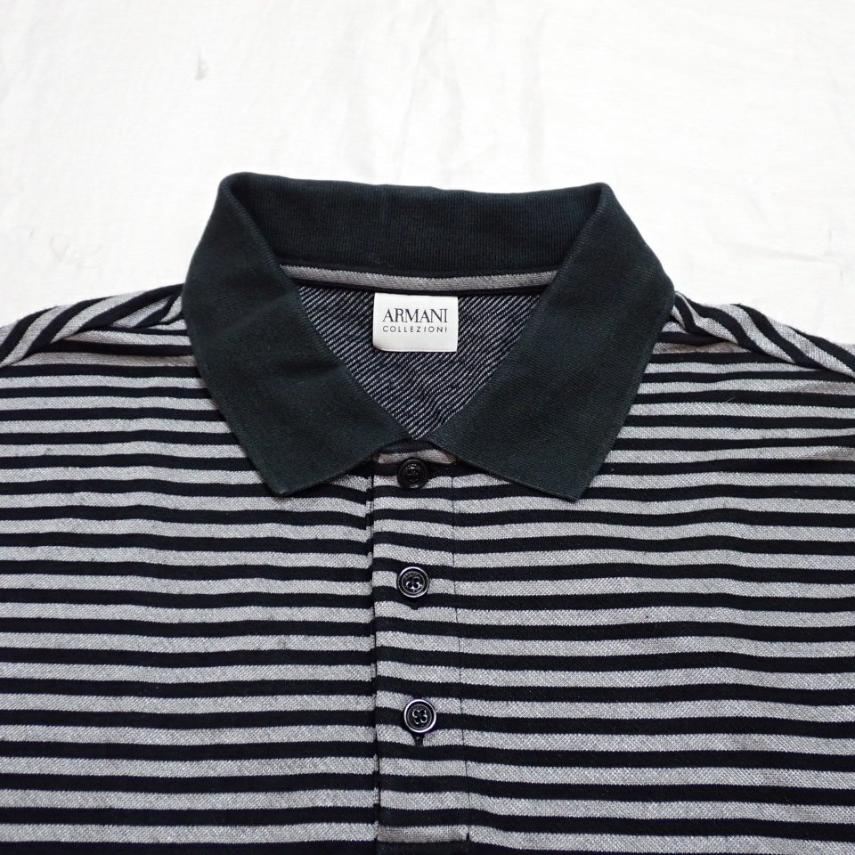 ★ARMANI COLLEZIONI/アルマーニコレツィオーニ 半袖ポロシャツ メンズM/シルバー×ブラック/ボーダー柄&1577906700
