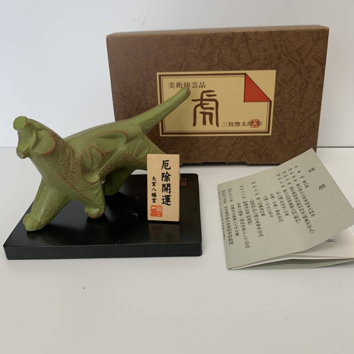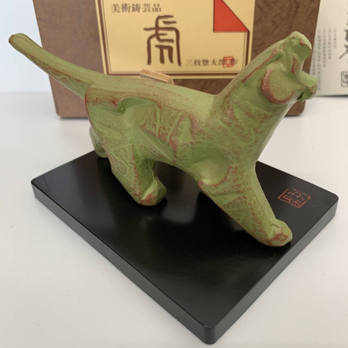 | #4745 三枝惣太郎 置物 寅 虎 トラ 動物 インテリア 鋳造 厄除け 美術鋳芸品 開運 金属工芸品 美術品 縁起物 アンティーク 昭和レトロ | ||