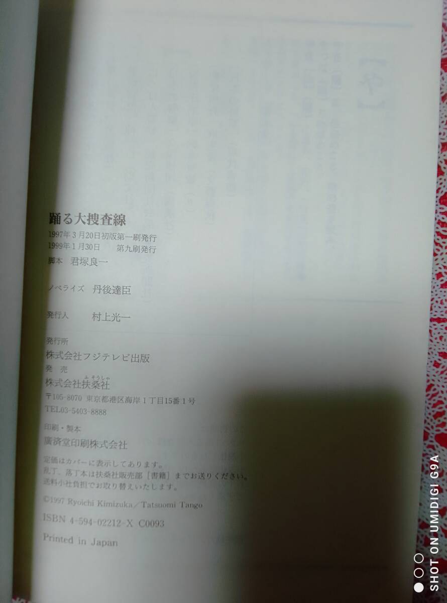 | 商品名稱 : | 踊る大捜査線 ノベライズ・丹後達臣/脚本・君塚良一 1999年第9刷(帯付) |