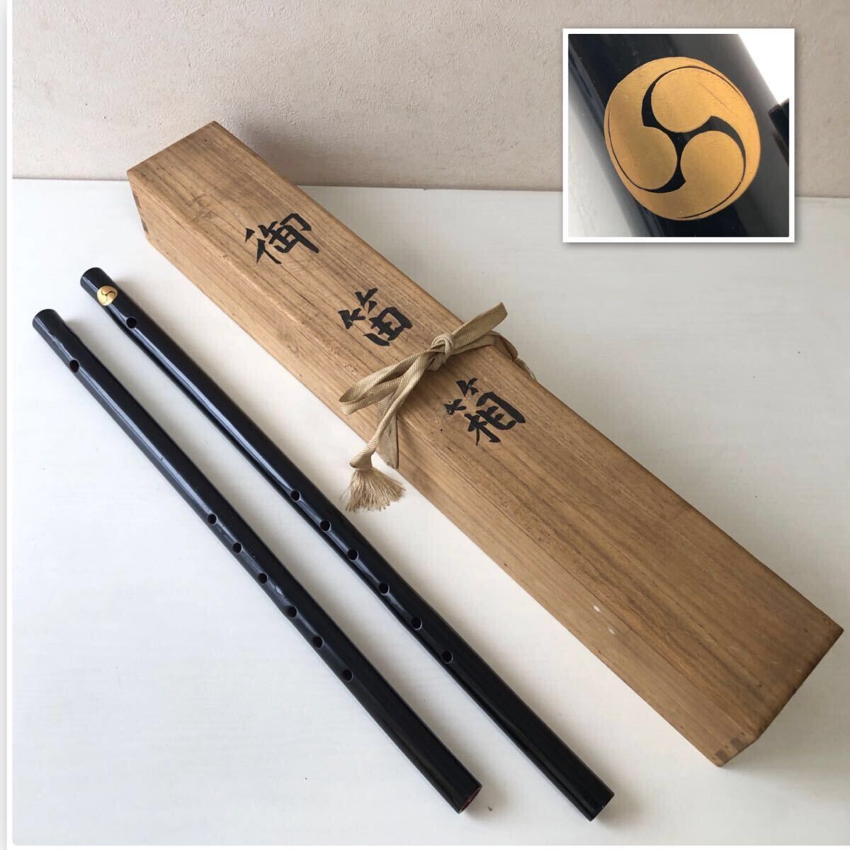 | 商品名稱 : | 和楽器 横笛 2本 共箱 御笛箱 蒔絵家紋 漆塗 昭和四巳年 78cm 51cm 龍笛 竹笛 明治一三辰年八月吹初 桐箱 |