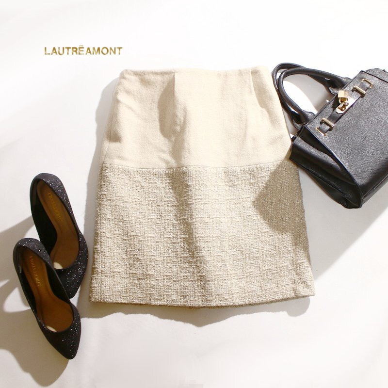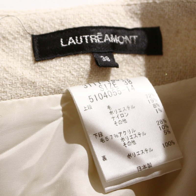 商品名稱 : 美品 ロートレアモン LAUTREAMONT 秋 冬 毛 ラメ 2種切替 タイト ウールスカート 9号 38 ベージュ ゴールドラメ フォーマル 通勤 オフィス