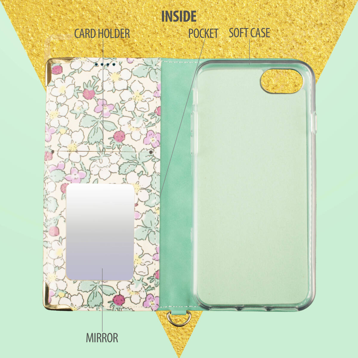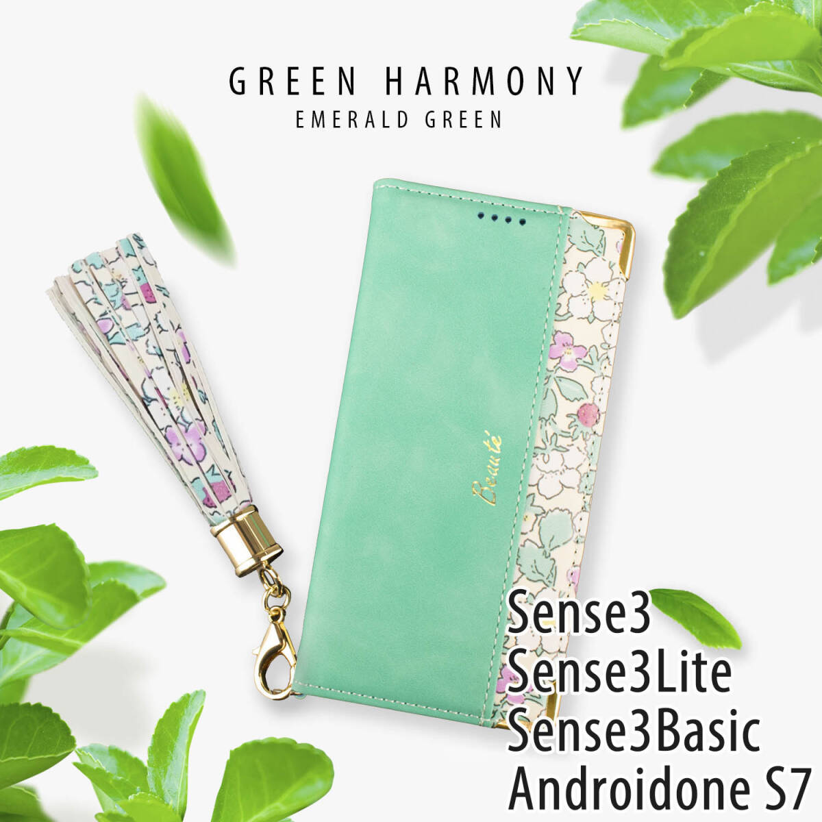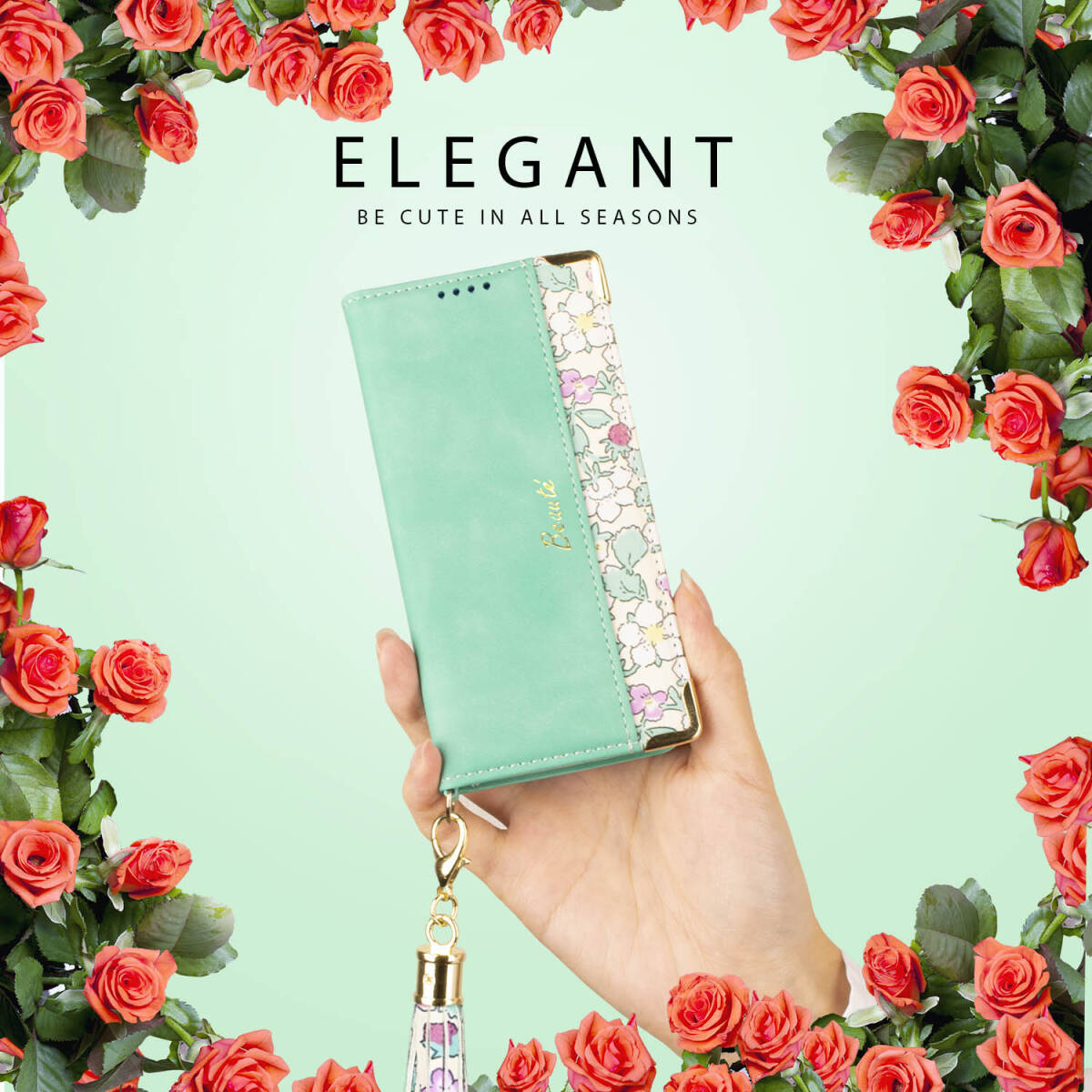 春色の癒しを手に。淡いミントグリーンに優雅な花柄が映える、女性らしさ満点のスマホケース