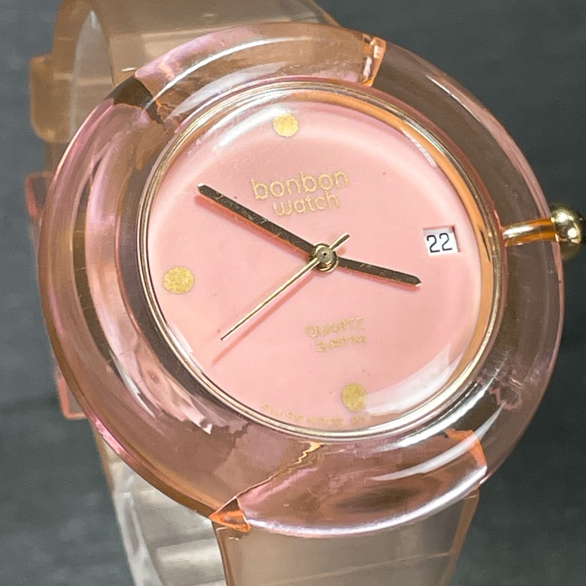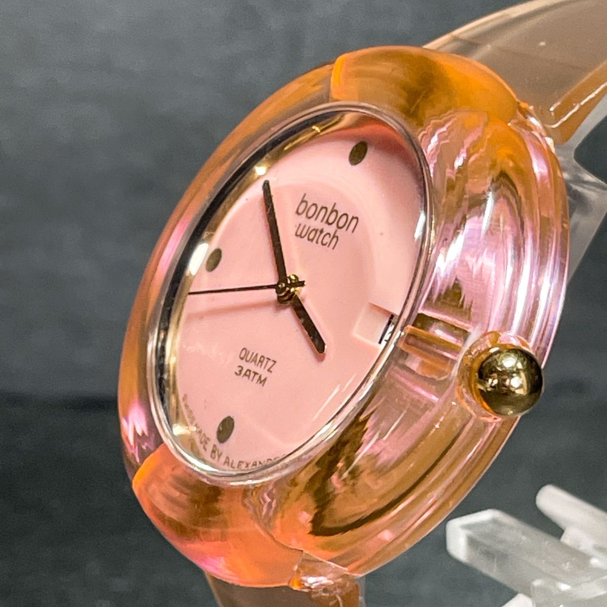 bonbon watch ボンボンウォッチ 腕時計 アナログ クオーツ 3針 カレンダー ピンク スケルトン ラバーバンド 新品電池交換済み 動作確認済み