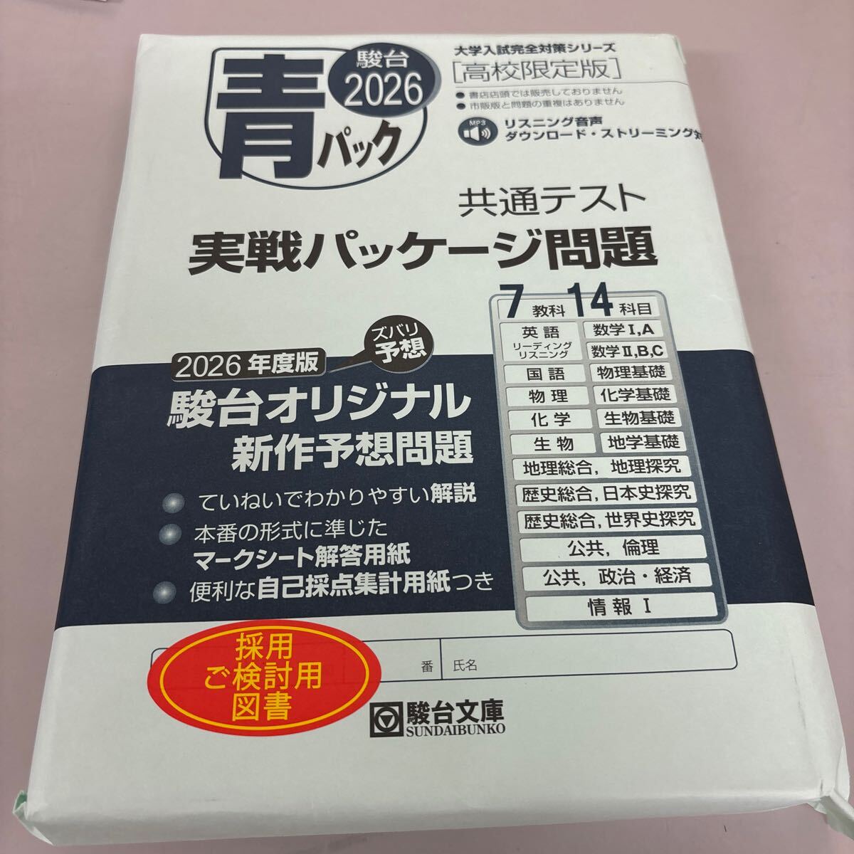 | 商品名稱 : | 駿台2026 青パック 共通テスト実戦パッケージ問題 駿台文庫 |