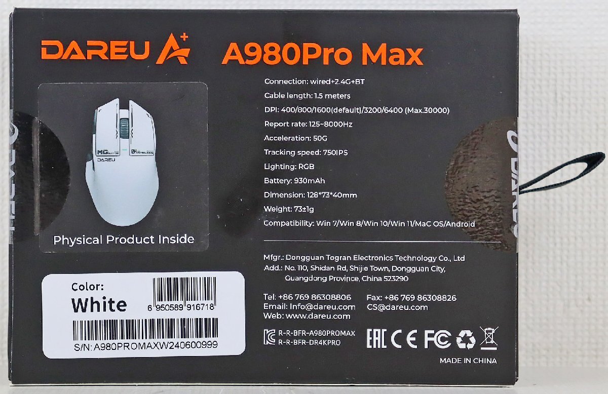 | 商品名稱 : | S◆未使用品◆パソコン周辺機器 『トライモードワイヤレスゲーミングマウス DAREU A980Pro Max』 有線・2.4GHz無線・Bluetooth 5.1 未開封 |