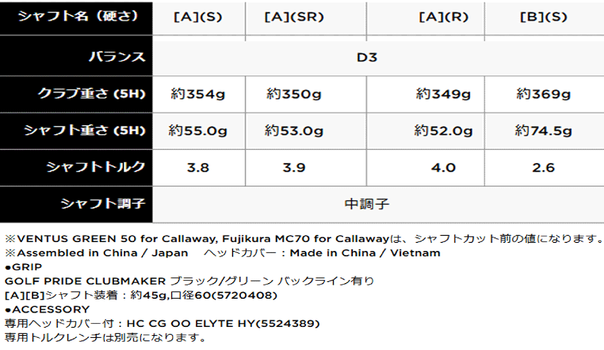 | 商品名稱 : | 新品■2025.2■キャロウェイ■ELYTE-X■ユーティリティ1本■5H:25.0■FUJIKURA MC70 for CALLAWAY カーボン■S■弾道補正能力と調整機能 |