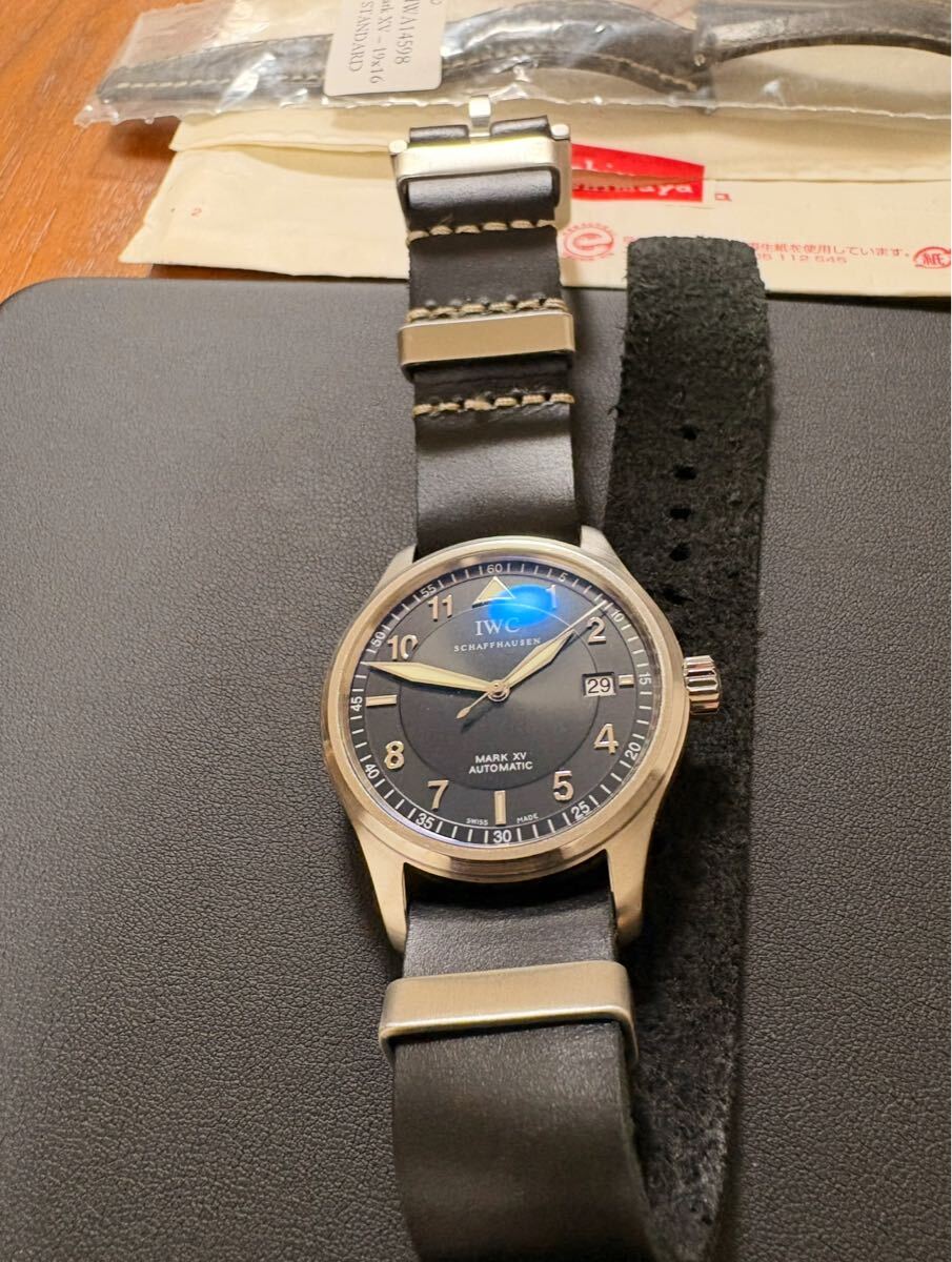 最近は社外品商品無法判斷是否為正規品 の革NATOストラップに交換して使用しておりましたのでこちらもこのままお付けします。