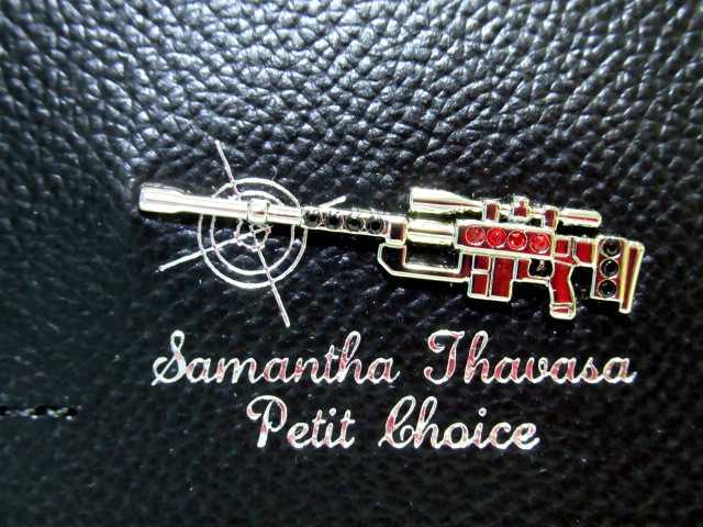 金具にはライフルの照準モチーフを箔押しし立体的に表現