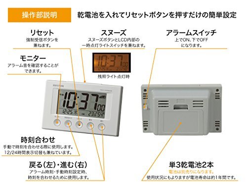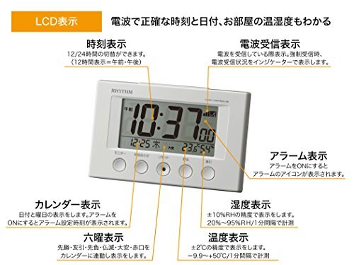 コンパクトサイズながらも前面スイッチで使いやすくなっています。 温湿度計とカレンダー・六曜も搭載のハイスペックモデル。