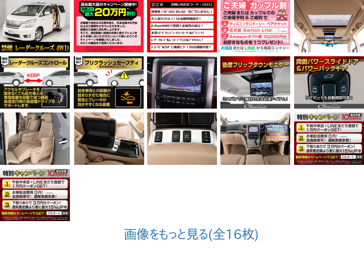 | 商品名稱 : | 【諸費用コミ】:平成25年 ヴェルファイア HV V-L 4WD レーダーC 本革 SR 禁煙 |