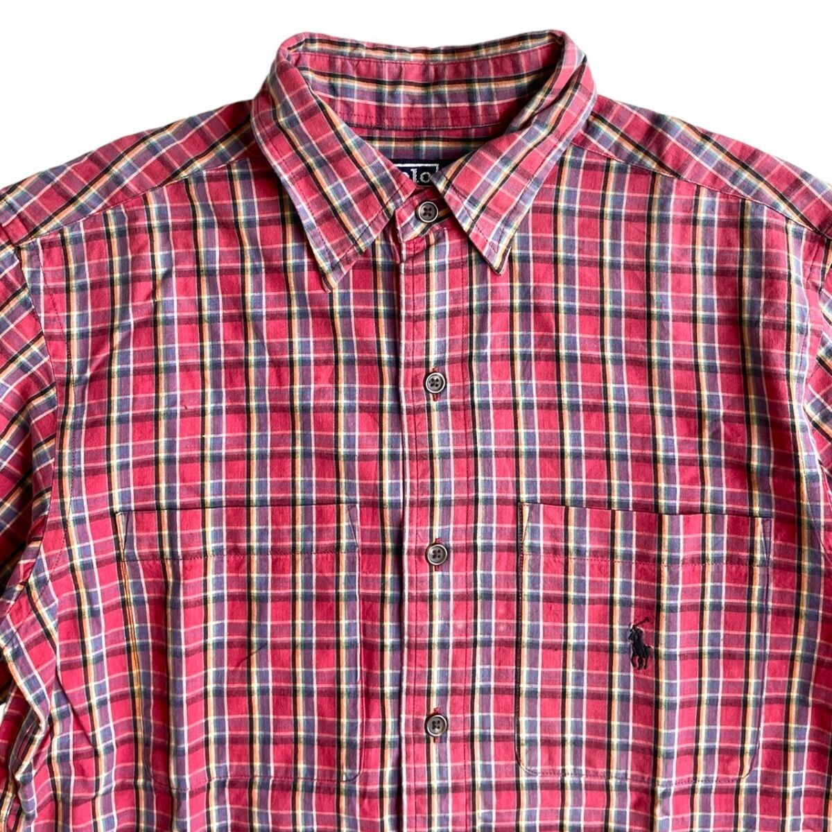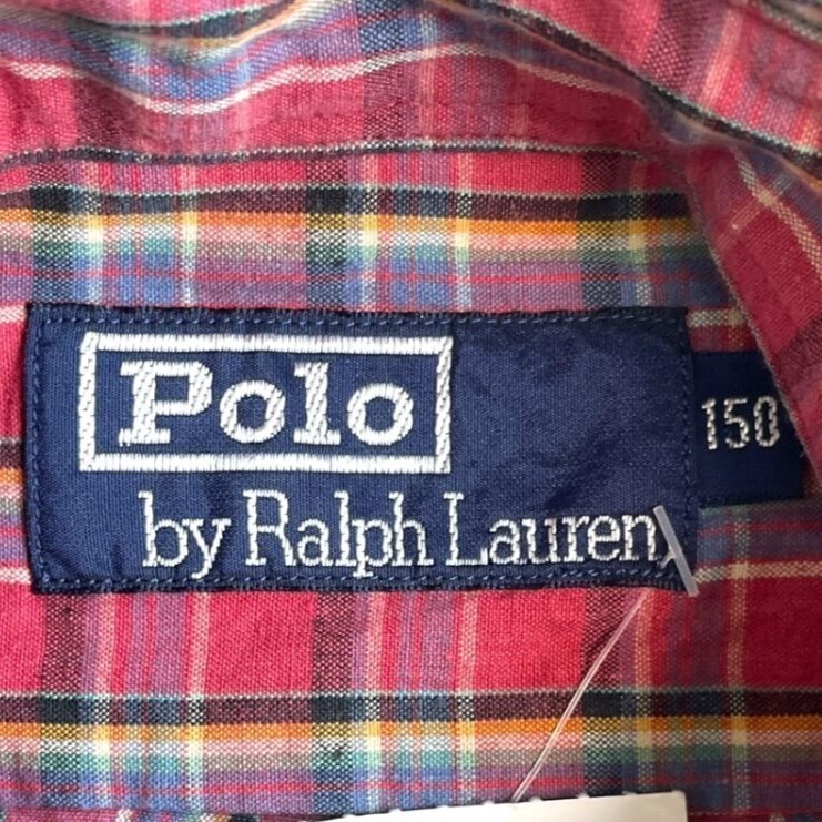 国内正規品★POLO RALPH LAUREN ポロ ラルフローレン 半袖 刺繍 ロゴ チェック シャツ S/S 150 ボーイズ 古着 赤系 SHIRT CHECK