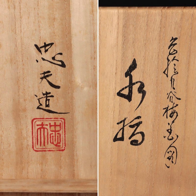 | 共箱(箱底面にテープの貼り付けがございます)/塗蓋/栞 |