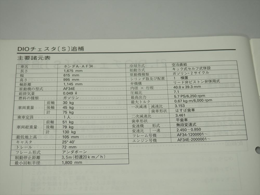| 商品名稱 : | DIO チェスタ S AF34 追補版 サービスマニュアル ディオ 配線図有り |