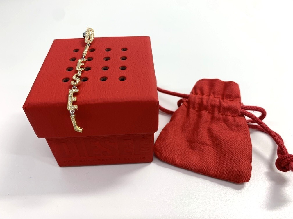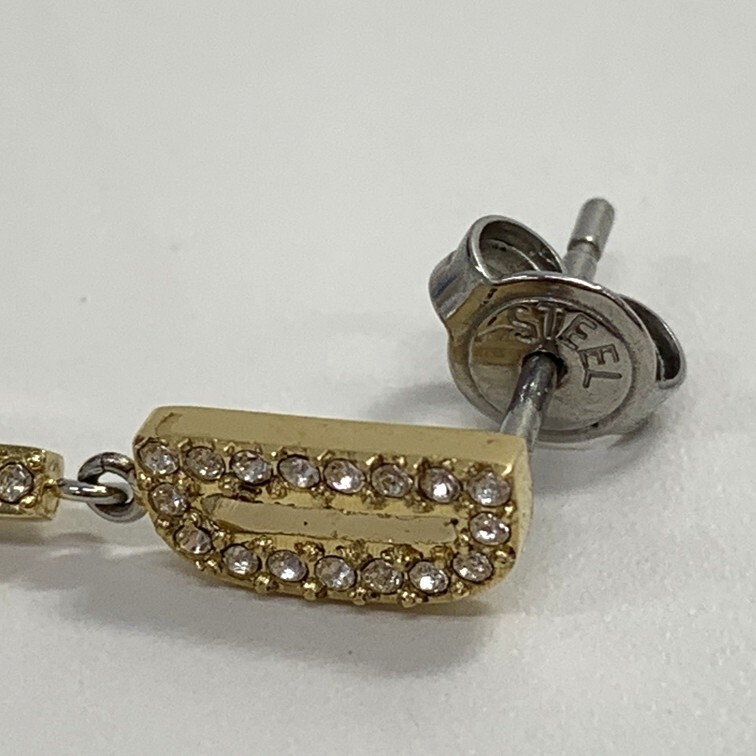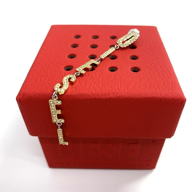 | 商品名 | 【中古美品】 Diesel ロゴ ゴールドトーン ピアス ラインストーン ディーゼル 片耳用 ステンレススチール 箱付き アクセサリー AEN9791GI |
