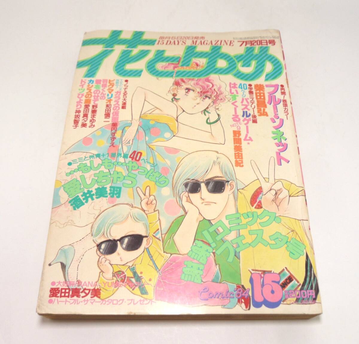 『花とゆめ』1984年第15号(7月20日号)、第11巻第17号(通巻272号)、白泉社、昭和59年7月20日発行。定価200円。表紙:酒井美羽。カラー口絵:「HANA=YUMEギャラリー2/愛田真夕美」など。漫画:柴田昌弘(カラー2P)、酒井美羽(二色刷り8P)、愛田真夕美、美内すずえ、ちびにゃんね、野妻まゆみ(カラー1P)、野間美由紀、猫十字社、高野まさこ、和田慎二、神坂智子、神谷悠、更紗糖。<状態>表紙にスレ、折れ、汚れなど。背表紙に色褪せ。小口にヤケ。本文にヤケ、汚れなど。 発送は、クリックポスト(185円)、おてがる配送・ゆうパケット(230円)、レターパックライト/プラス(430円/600円)、ヤマト宅急便コンパクト(送料+箱代70円、送料はこちら のヤマト運輸のサイトで確認できます)、おてがる配送・ゆうパック(60サイズ)の発送方法から落札者様のご希望を伺います(宅配便以外は破損や不着など配送事故の際の保障がありませんので、その旨ご了承頂ける場合に限ります)。※厚み制限のある配送方法(クリックポスト、ゆうパケット、レターパックライト等)の場合、基本、ビニール袋に入れるだけの簡易梱包となります。 <通常の発送スケジュール> ・ヤマト運輸の発送方法(宅急便)の場合:基本、お支払い確認後、2日以内に発送可能 。 ・郵便の発送方法(普通郵便・定形外、スマートレター、クリックポスト、おてがる配送・ゆうパケット、ゆうメール、レターパックライト/プラス、おてがる配送・ゆうパック)の場合:基本、お支払い確認後、2日以内の平日 に発送可能(集荷可能な通常ゆうパックを除く)。土日祝は発送不可。 ※天候や当方の事情など、通常と異なる発送スケジュールになる等のお知らせがある場合は、自己紹介欄に記載しますので、ご確認下さい。 ※梱包には基本、リサイクル資材を使用しています。 ※無断キャンセルの多い方は入札を削除させて頂く事があります。 ※即決金額を設定していないものに関しては、即決(早期終了)のご依頼はお受けしておりません。 ※記載済み、表示済みの事柄に関してのご質問にはお答え致しません。 ※予めお申し出がない限り、落札より3日以内にご連絡がない場合、かんたん決済支払期限内にお支払いを頂けない場合(新規IDの方は3日以内にお支払いがない場合)はキャンセルさせて頂きます 。 ※「まとめて取引」をご希望の場合は、事前に取引ナビのメッセージでご希望の配送方法をお知らせ下さい。 ※原則、終了日時が1週間以内でしたら取り置き可能です(決済期限が5日ですので、お支払いは別々にお願いします)。 他にも出品しておりますので、どうぞ宜しくお願い致します。 >