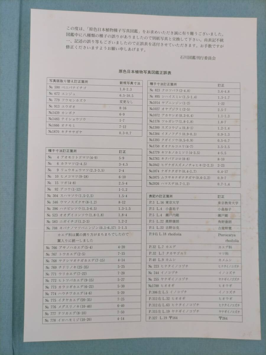 KK213-015 原色日本植物種子写真図鑑 1994年5月20日初版発行 石川茂雄著 石川茂雄図鑑刊行委員会発行 ※書き込み、蔵書印あり