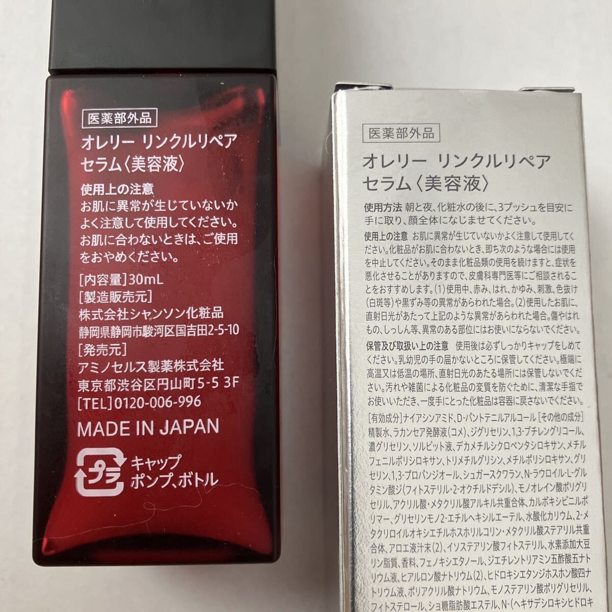 | 商品名稱 : | オレリー リンクルリペアセラム美容液30ml リンクルリペアブーストローション化粧水100ml USED セット |