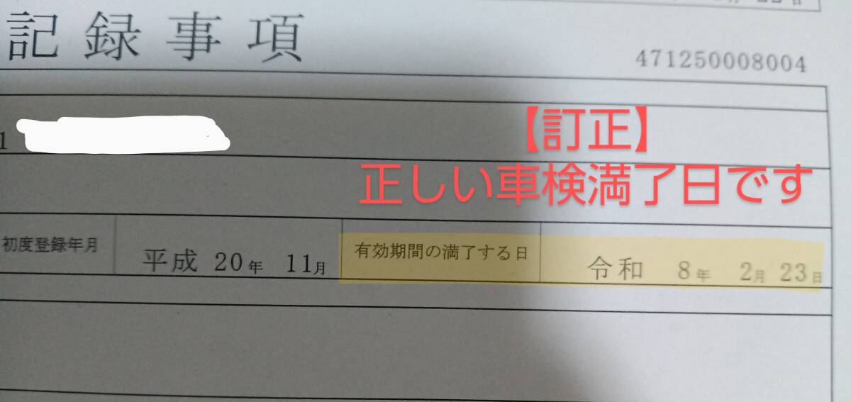 (2025年 8月 14日 21時 59分 追加) 【訂正】車検満了日は令和8年2月23日が正しい日付となります。半年残っています。どうぞよろしくお願い致します。