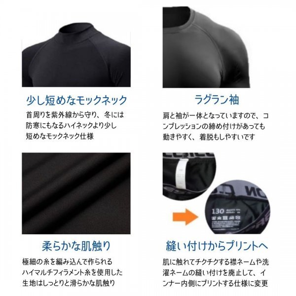 | 着替えも恥ずかしくない! ぴったりフィットでもサラサラでインナーが気にならない! シンプルさを追求し、日本国内でデザイン・監修した完全オリジナルなUHブランドインナー。 コンプレッションインナーとしてお子様のスポーツやトレーニングに力を発揮!筋力をサポートしてパフォーマンスを上げ、 筋損傷の回復効果があることを確認した研究から、疲労回復効果もあります。ユーエイチブランドの製品は日本国内の品質評価機構にて生地検査合格を取得。紫外線防止指数の測定値はUPF50+、紫外線遮蔽率は99.8%でお子様の日焼け防止効果も抜群です。吸汗速乾なスポーツインナーは長時間のスポーツでも快適に過ごすことができます。衿口はオールシーズン使うからハイネックより短めなモックネック。ハイマルチフィラメント糸を使用した生地は柔らかな肌触りで、夏冬問わず全シーズンに対応!ぴったりフィットは脇がキツいと感じることが多いため、パフォーマンスを上げる締め付けも残しつつ、脇部分を縫い合わせることでストレスを無くしたスマートフィット構造! 肩と袖が一体となっている着心地のいいラグラン袖仕様のため、着るのも脱ぐのもカンタンで、ピッタリフィットでも4方向ストレッチ素材が動きやすくし、日常的に通学用や日焼け防止、防寒用インナーとしても使えます。 ■組成表示■ ポリエステル92% ポリウレタン8% ■使用環境■ 野球、サッカー、フットボール、ラグビー、陸上、テニス、バスケットボール、バドミントン、バレーボール、卓球、ソフトボール、ジョギング、ランニング、トレーニング、スキー、スノーボード、ダンス、ヨガ、フィットネス、登山など、あらゆるスポーツに対応したコンプレッションインナーがお子様のパフォーマンスを向上させます。 本体とステッチが同色のため、公式戦にも対応してます。 ※ご利用のパソコン、モニター環境によって、画像の色味が異なって見える場合がございます。予めご了承下さい。 | ||
