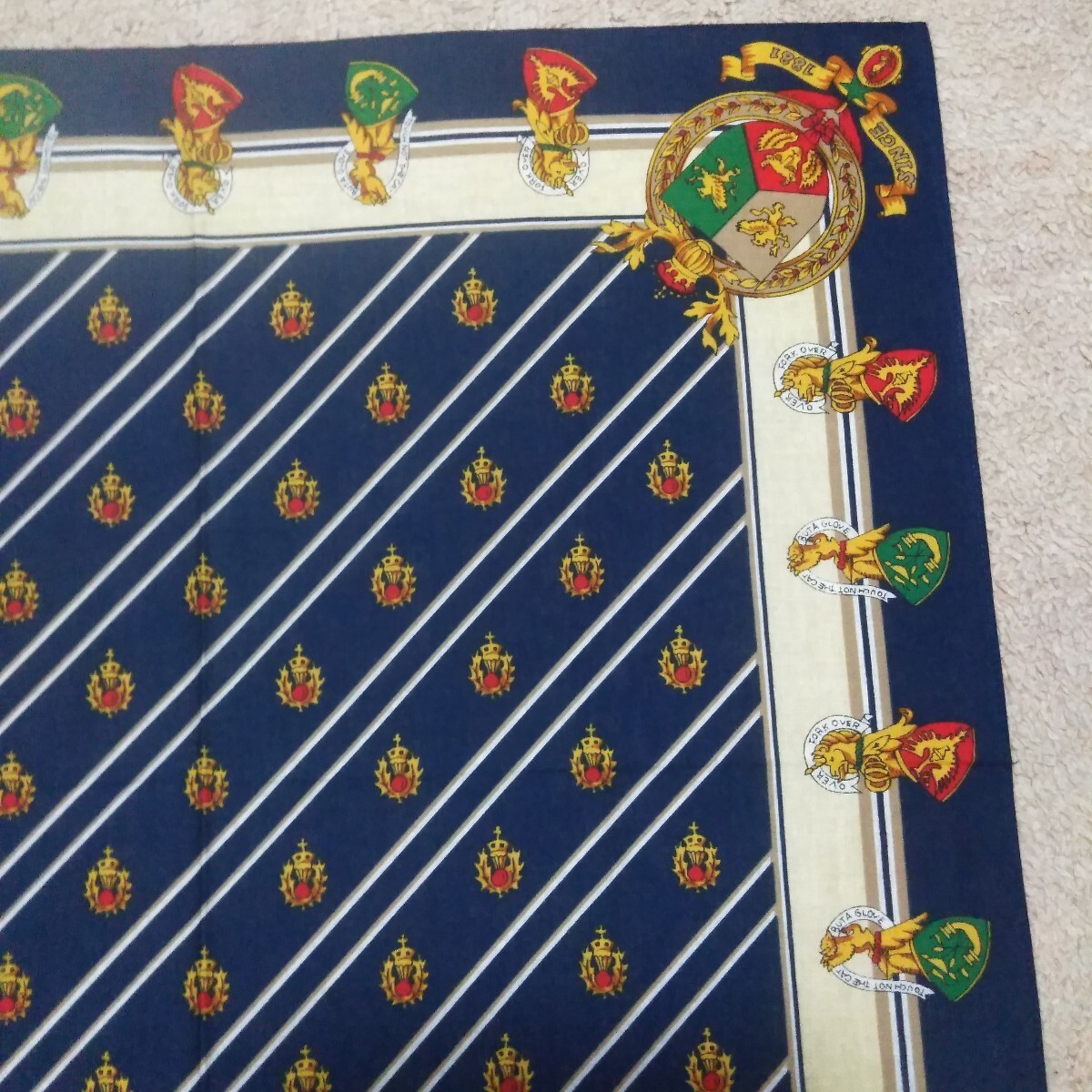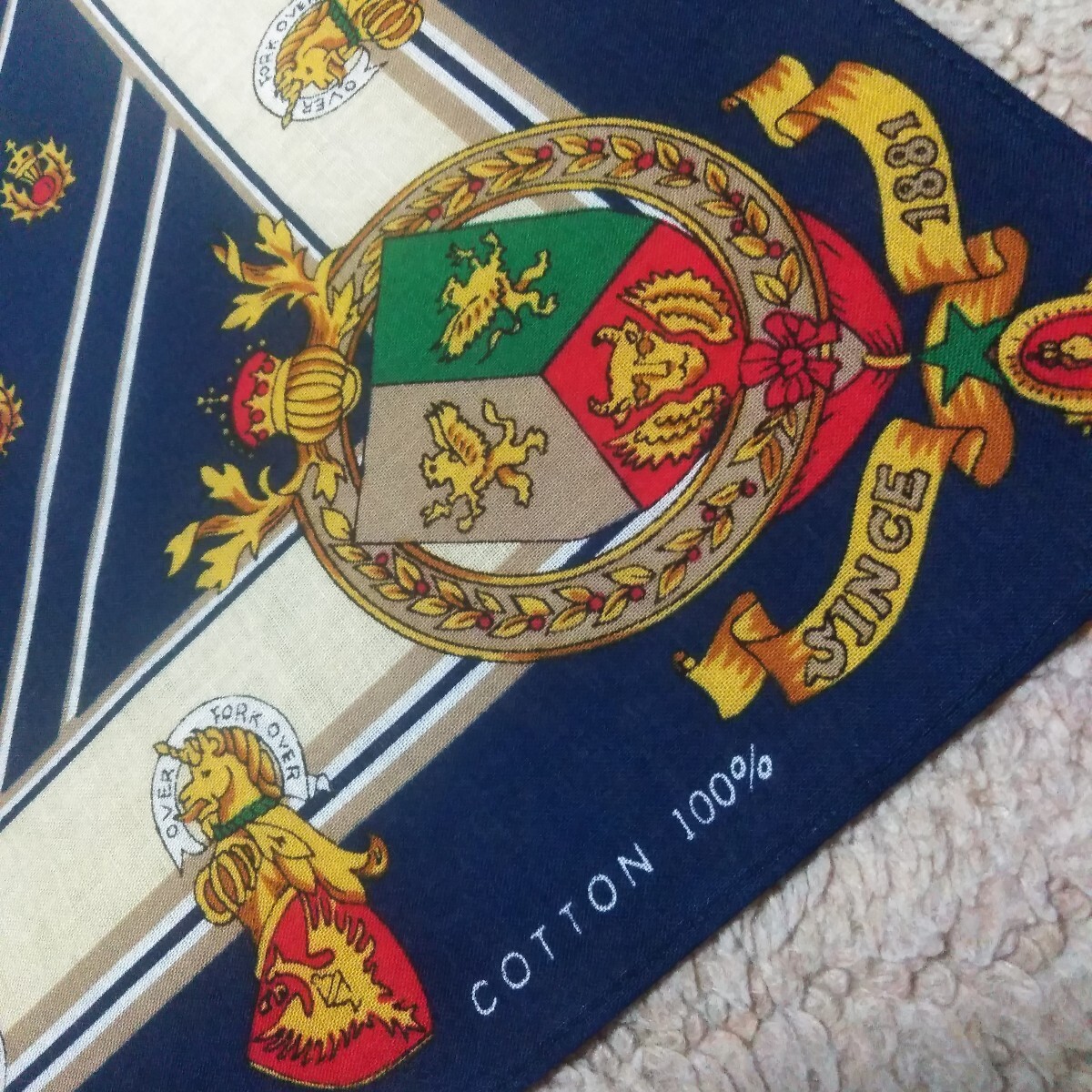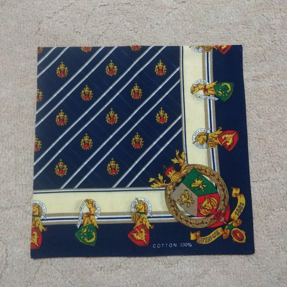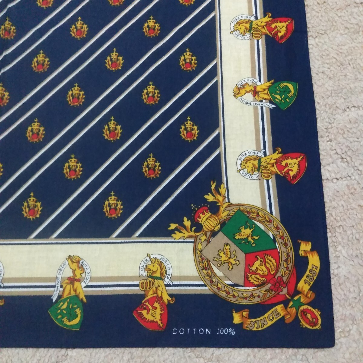 未使用保管品です。譲り受けた物です。 画像をタップして頂きますと大体の大きさを記載しております。ご確認下さい。 不備の無いよう目視にて確認しておりますが、見落としが有るかもしれません。 ご了承下さい。 折りシワはあります。 画像が全てです。 **注意**ご使用の際には1点ずつの水洗いまたは、石鹸や洗剤等で簡単に洗っていただく事をお勧めします。色落ちするものも多々ありますので他のものと一緒に洗濯した場合、色移りの可能性があります。未使用のものを出品していますのでご注意下さい。 一度洗って色落ちするものは、色がでなくなるまで何度か洗っていただきますと、他のものと一緒に洗濯していただいても色移りの心配は無いものと思います。絶対ではありません。大切な衣類に色移りしてしまうとほぼ落ちませんのでどうかご注意下さい。 また、取れにくいシールの剥がし方は、乾いた状態で剥がせる物は剥がしていただいてその後洗っていただくときにしっかりと石鹸等をつけ洗いながら爪先でこそげ落としますと経験上ほとんどのものは落とせます。こちらも絶対ではありません。参考まで。この時のご注意として生地を傷め無いように裏側を片方の指で固定しもう片方の爪先で表面のシールのみをかき削る感じです。強くこすり過ぎますと生地を傷めますので、手間はかかりますが根気よく行って下さい。薄手の生地には不向きです。その他インターネットでもいろんな方法があるようですので、検索してみてはいかがでしょうか。** 発送は定形外郵便のみとさせていただきます。到着迄大体ですが一週間前後の予定です。発送後の配達事故、天災、人災、未着等は一切責任を負いかねます。ご了承下さい。 簡単決済のみのお取り扱いとさせて頂きます。日にちを過ぎますと落札者削除をさせて頂きます。同時にブラックリストに登録させていただきます。 ご了承下さい。 個人でのお取引は致しません。 領収書の発行は致しません。 以上をご理解の上、ノークレーム、ノーリターン、ノーキャンセルでお願いいたします。 >